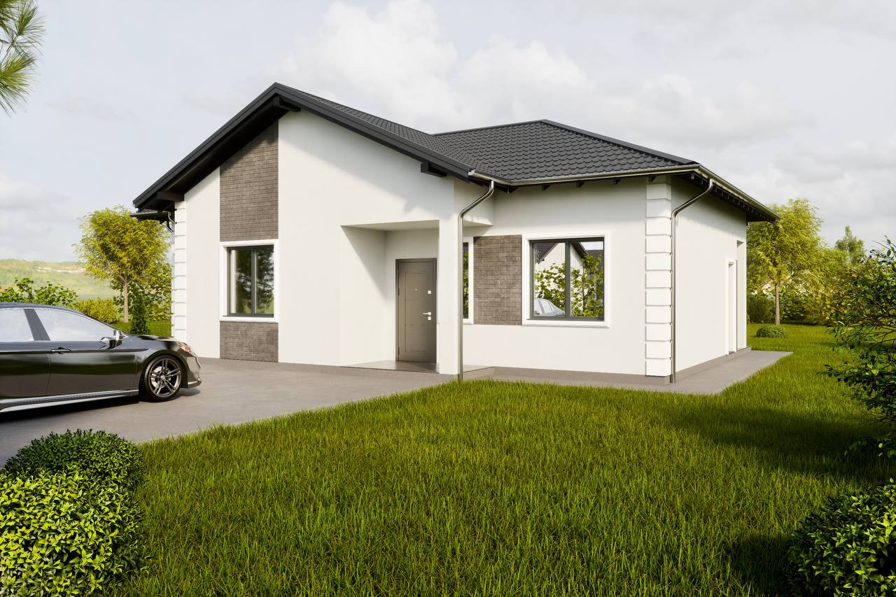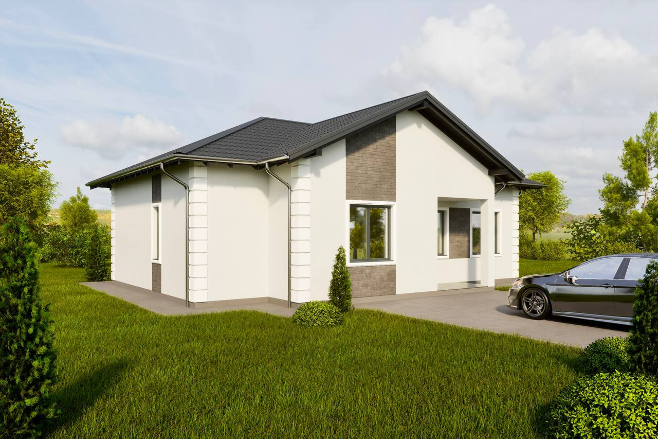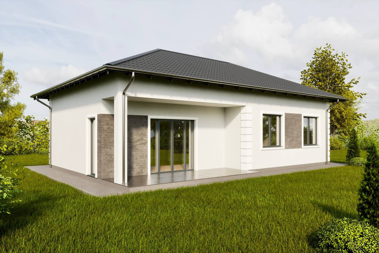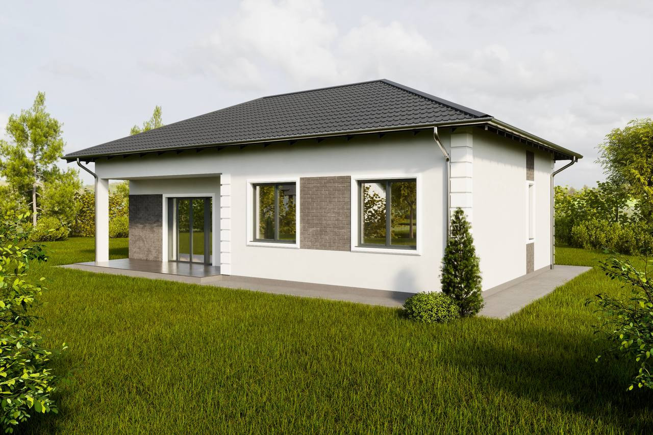 Спроектированы 6 типов одноэтажных домов с различной планировкой и квадратурой (75 кв.м - 130 кв.м.), при выборе типа дома на этапе строительства возможны дополнительные услуги, увеличение террасы, декоративная отделка фасада дома, замена базовых окон, по желанию покупателя.
