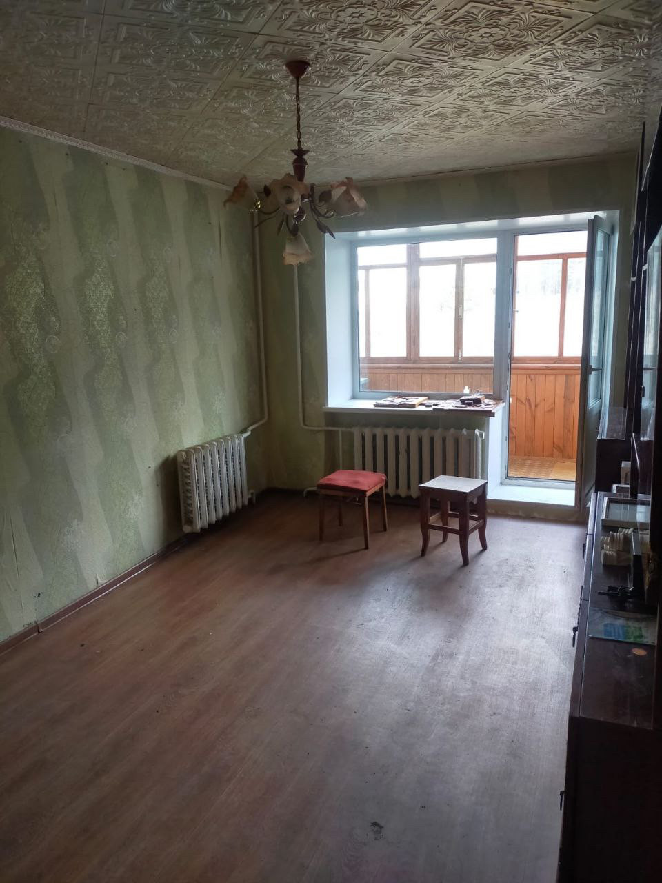 Общей площадью 47.4 кв.м. Окна ПВХ. Большой застекленный балкон.