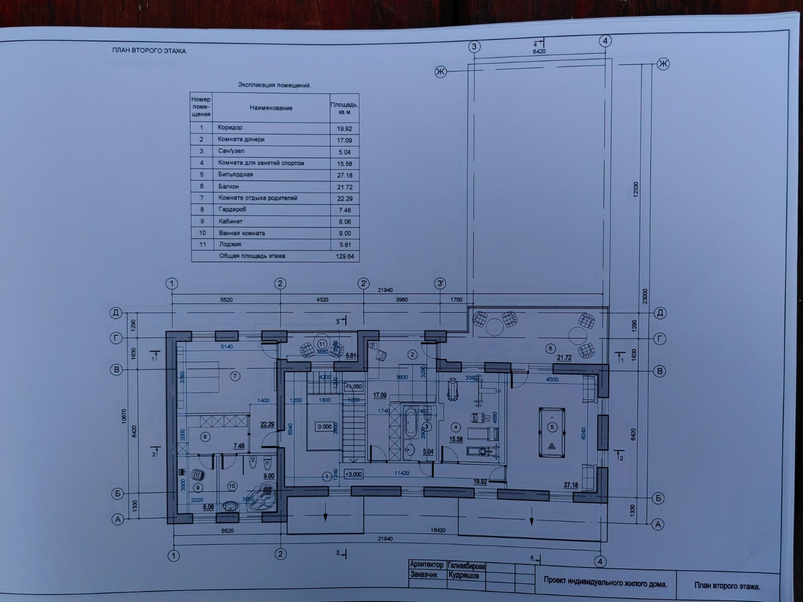 На втором этаже предусмотрена главная спальня с ванной, гардеробом, кабинетом и балконом. А также детская спальня, комната для занятий спортом, бильярдная с выходом на террасу. Доступ на чердак осуществляется по складной лестницы из главной спальни.
