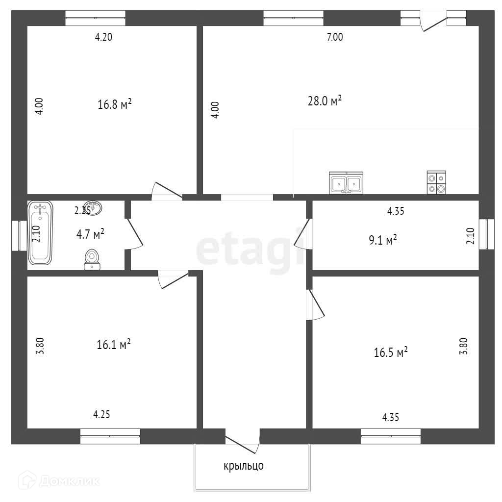 1-этажный дом, 100 м2, на продажу в поселке Новоберёзовском