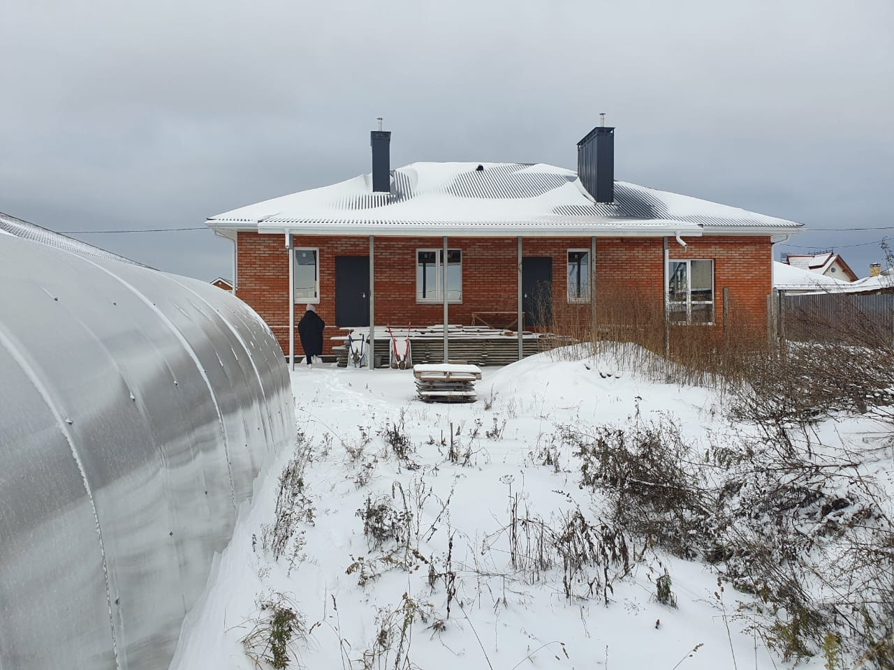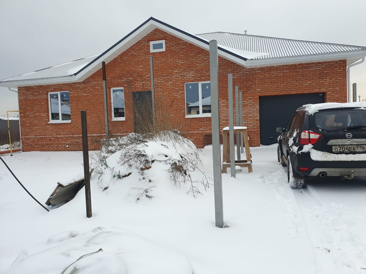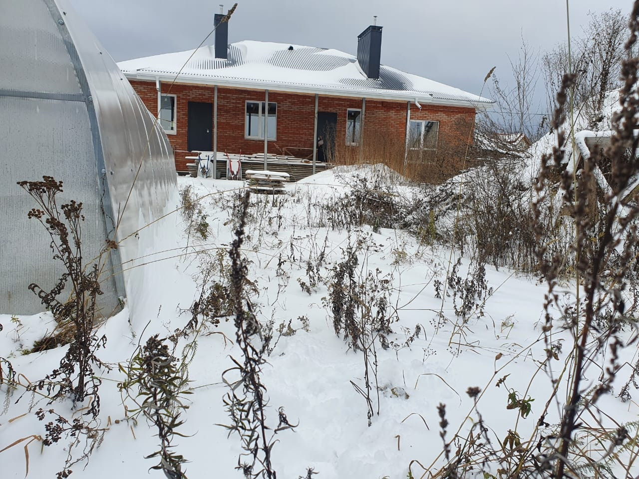 На участке своя скважина , теплица,установлены столбы под забор.