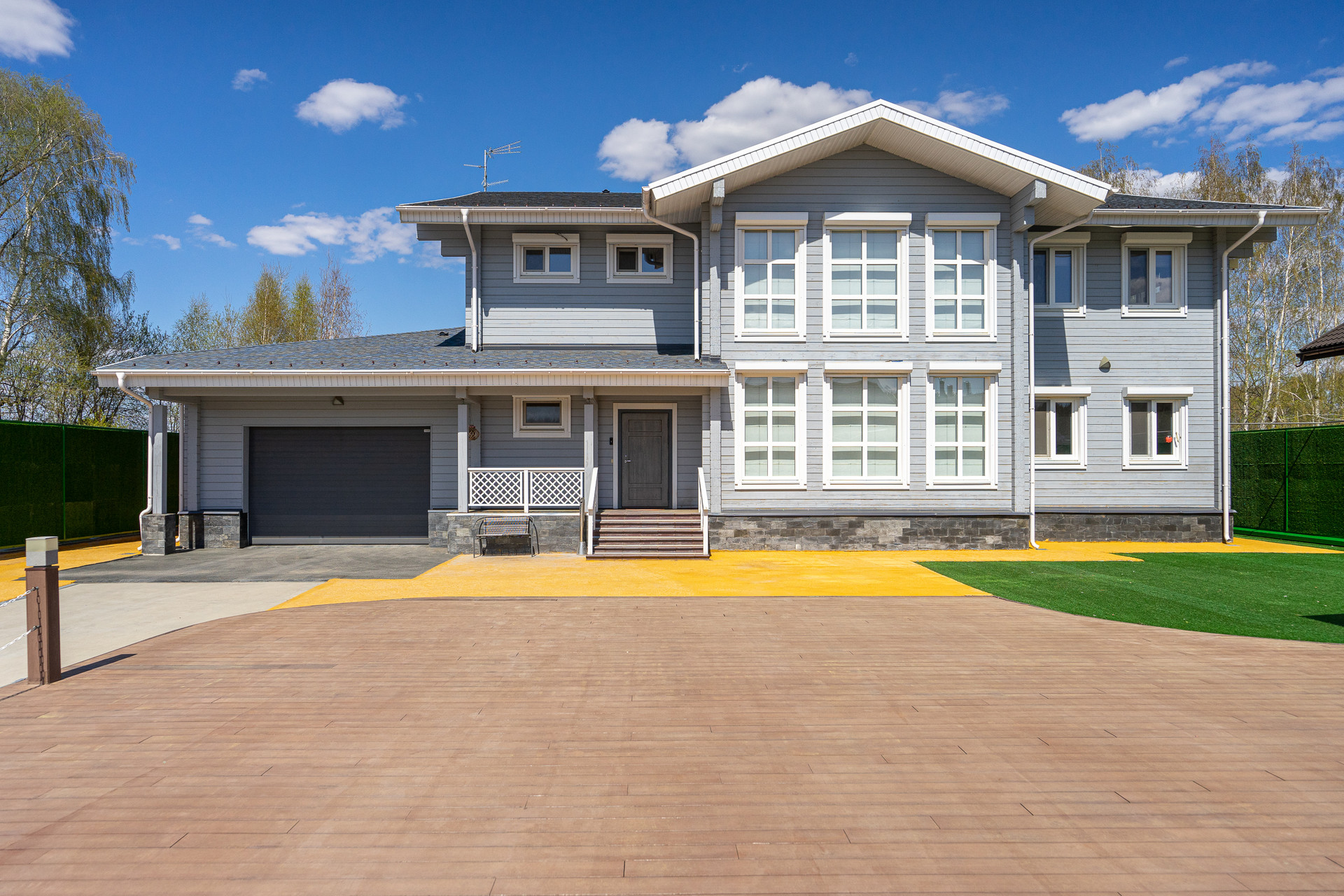 Дом построен с использованием современных технологий, шведская кровля, огнестойкий клееный сосновый брус, полностью отшлифован, обработан антисептиком, покрашен с наружной стороны, отбеленный внутри, торцы изолированы, обработан средствами против короеда. Централизованное отопление, вентиляция, кондиционирование, водоснабжение, резервный электрогенератор. Собственный SPA-комплекс, бассейн, хамам, спортзал. В доме встроенная техника, мебель, оборудованные санузлы, умный дом.