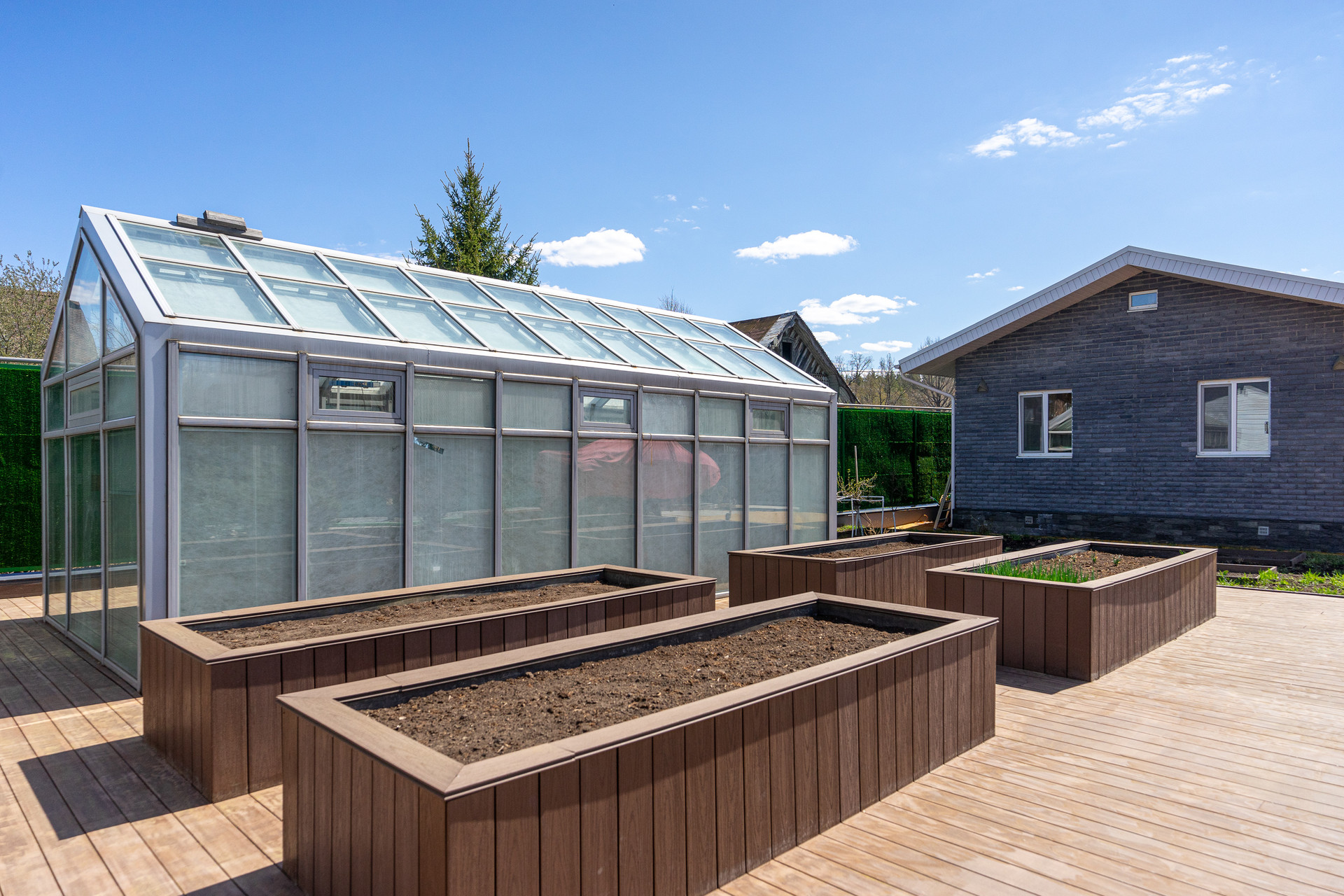 — отапливаемая теплица (металокаркас, стеклопакеты)