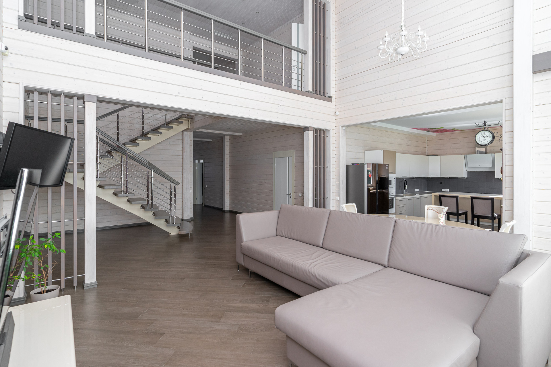 — кухня-гостиная с 6-метровым потолком и панорамным остеклением;
