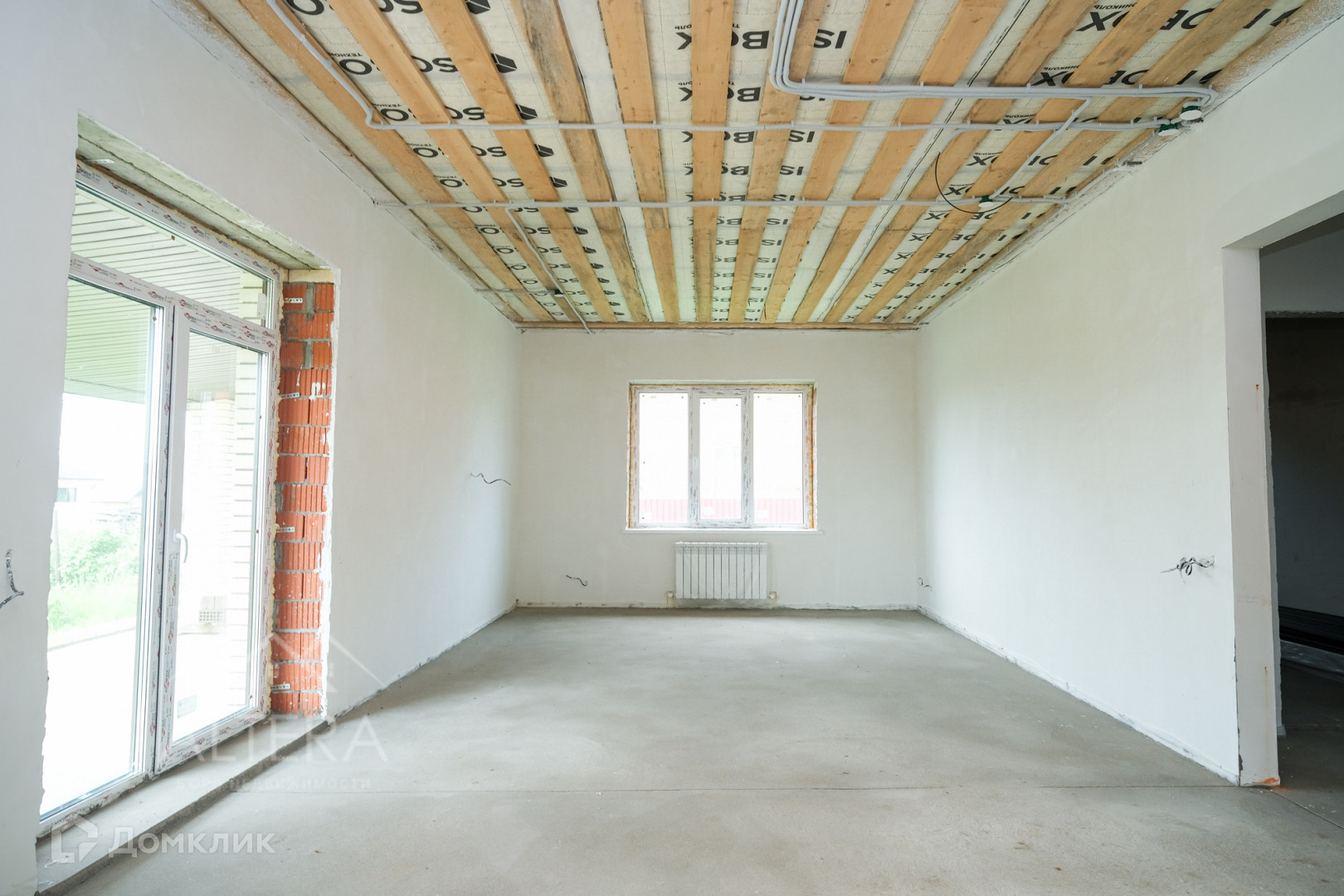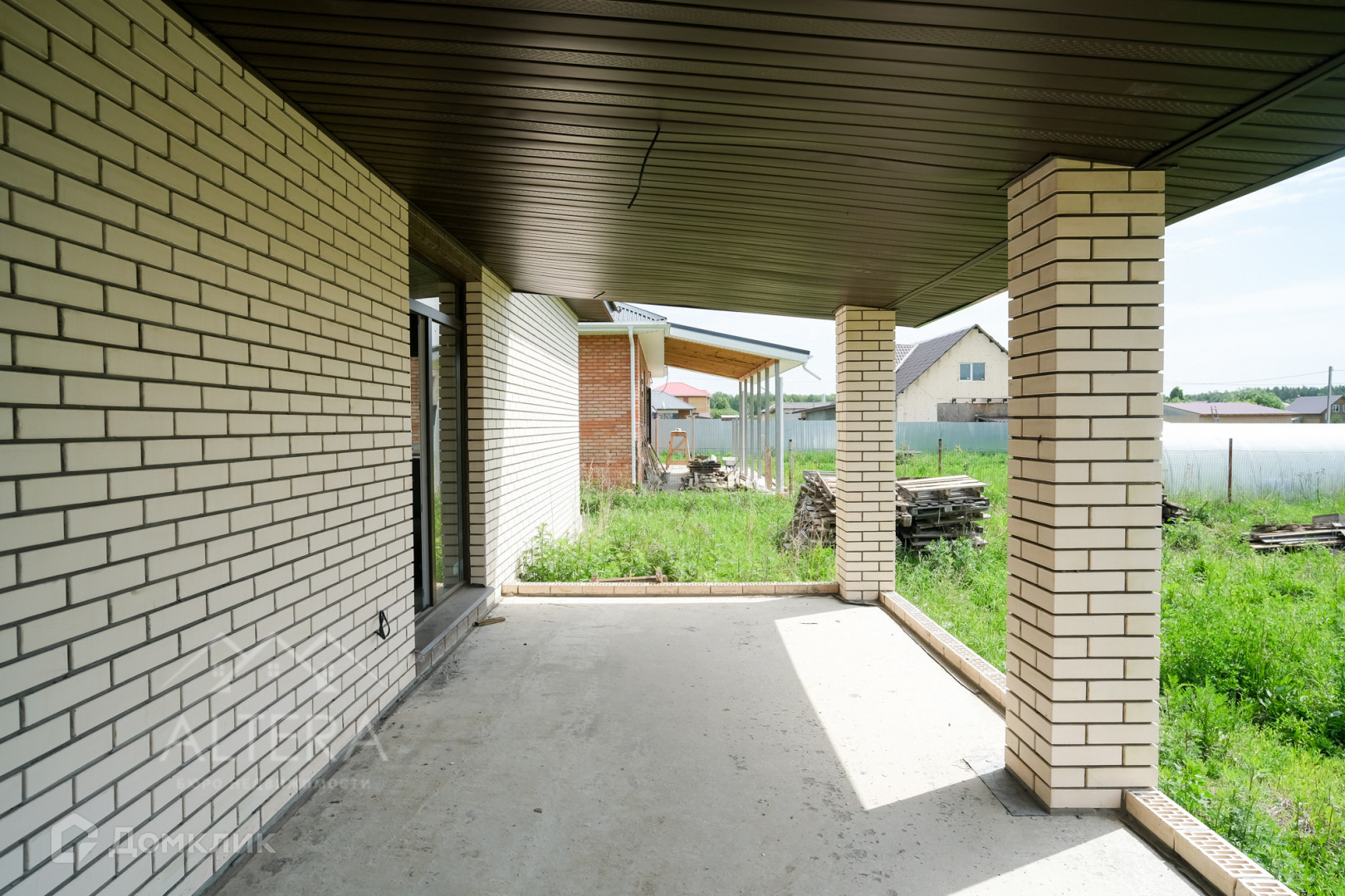 Облицован кирпичом. Капитальные стены внутри дома и межкомнатные перегородки из кирпича. Высота потолка  3м .