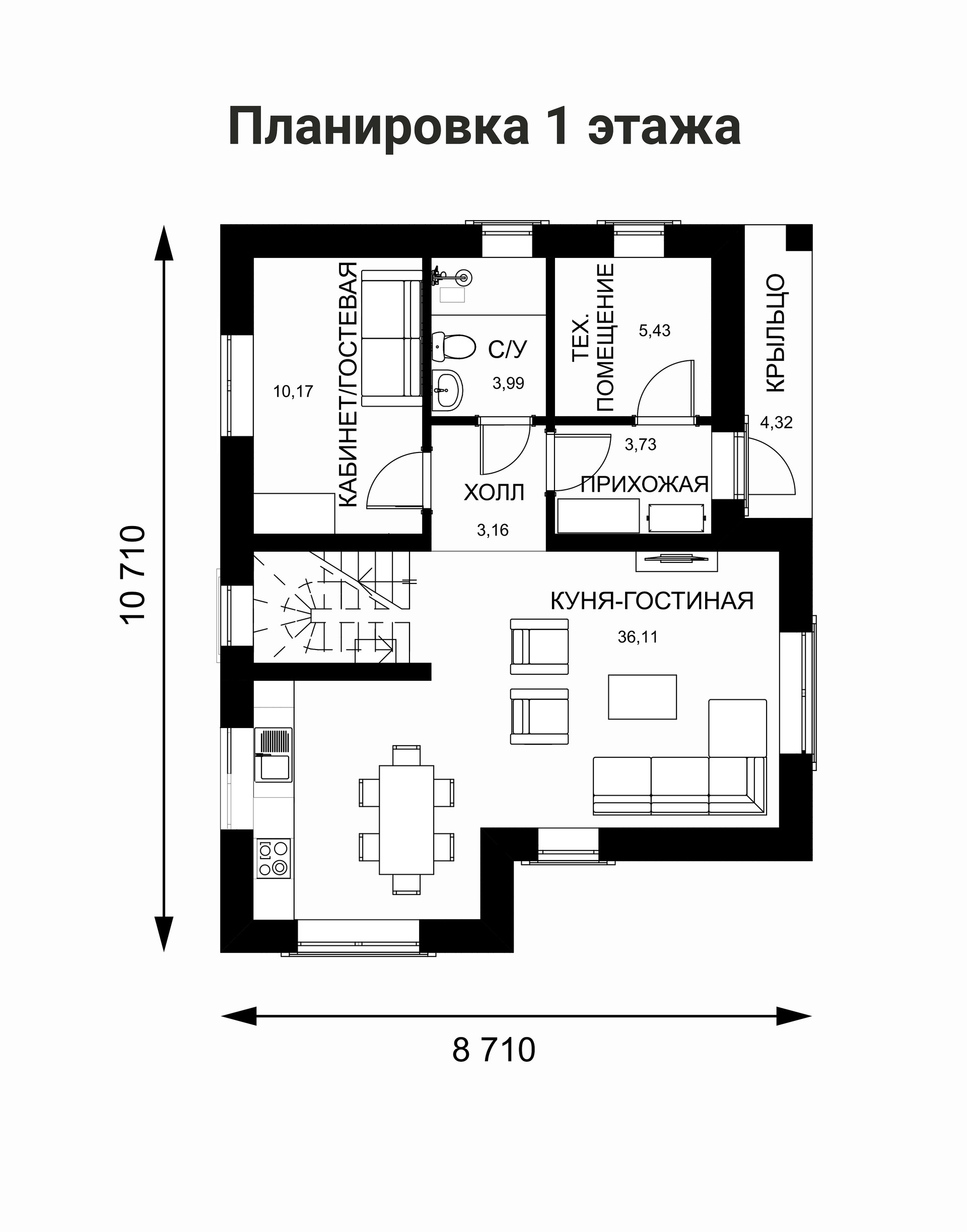 + Одна только кухня-гостиная площадью 35,5 кв.м, где с комфортом разместятся и домочадцы, и гости!