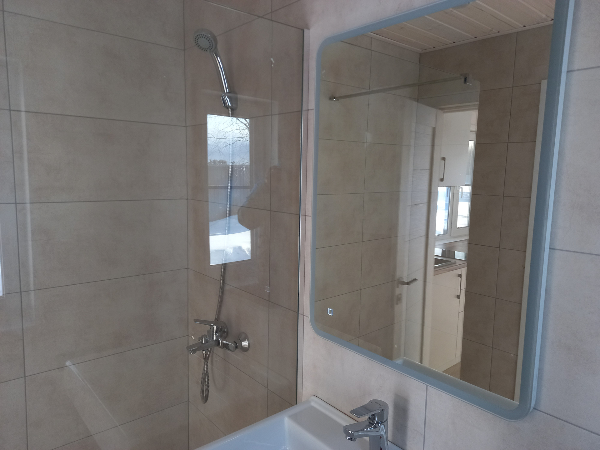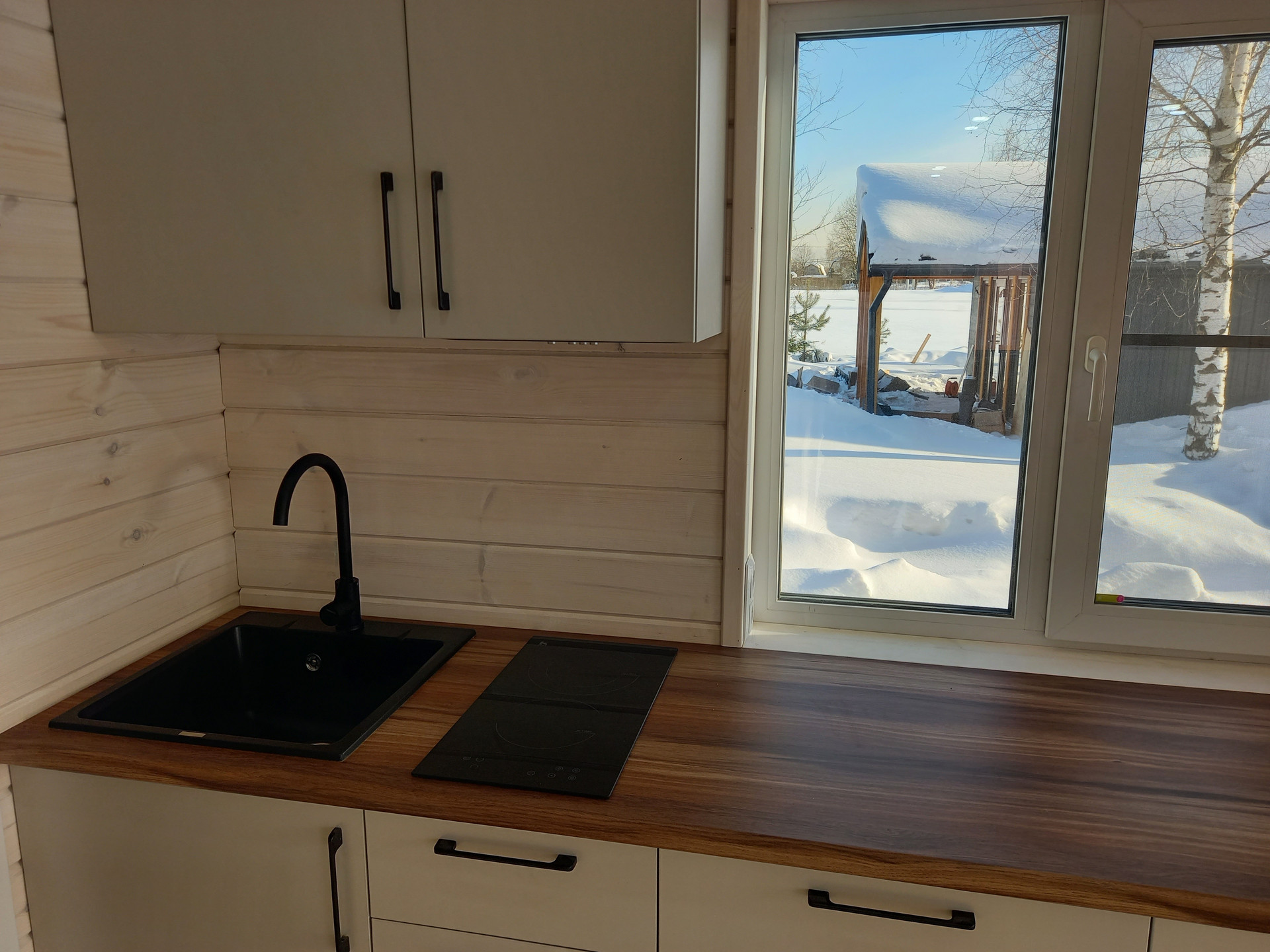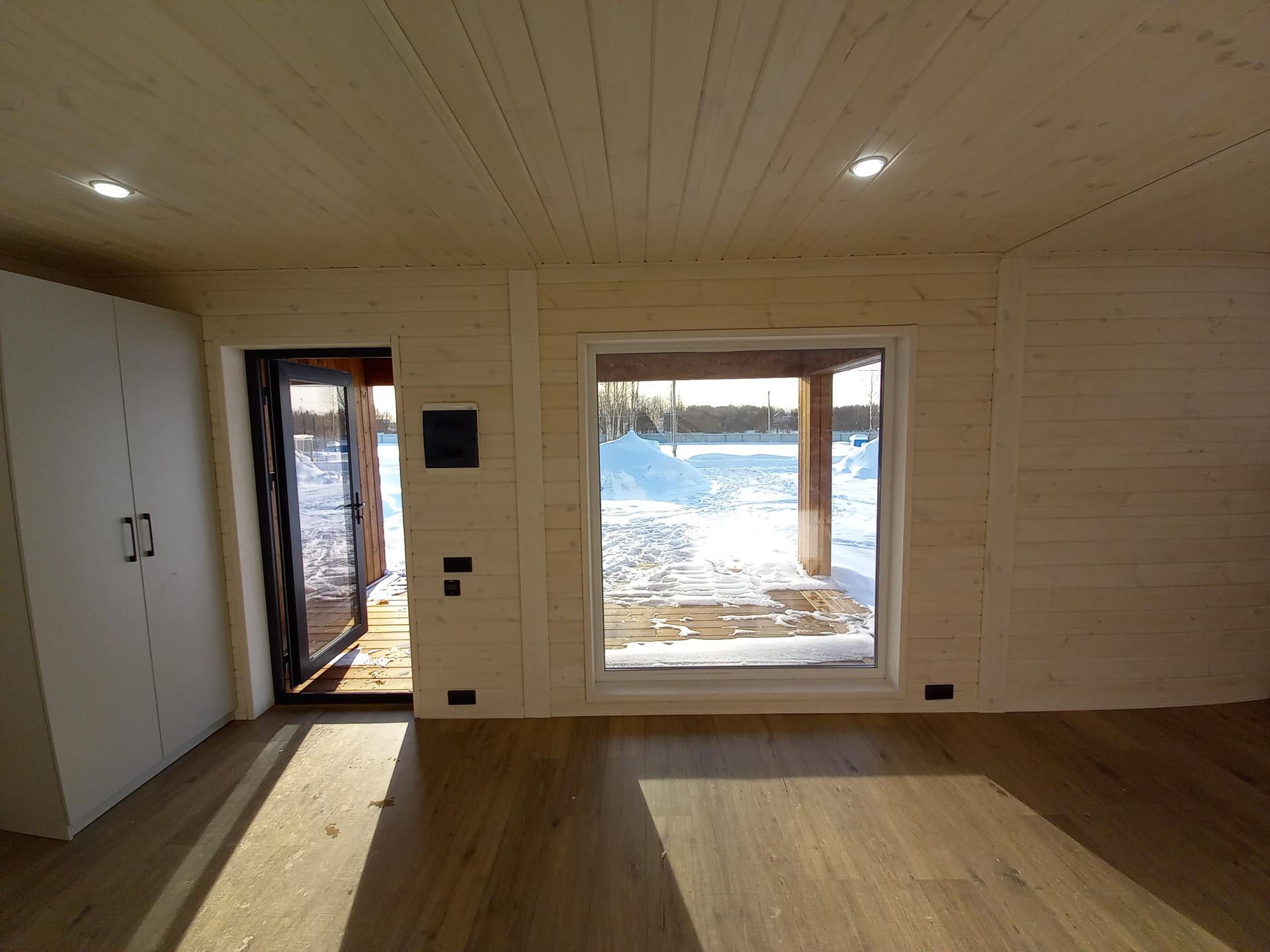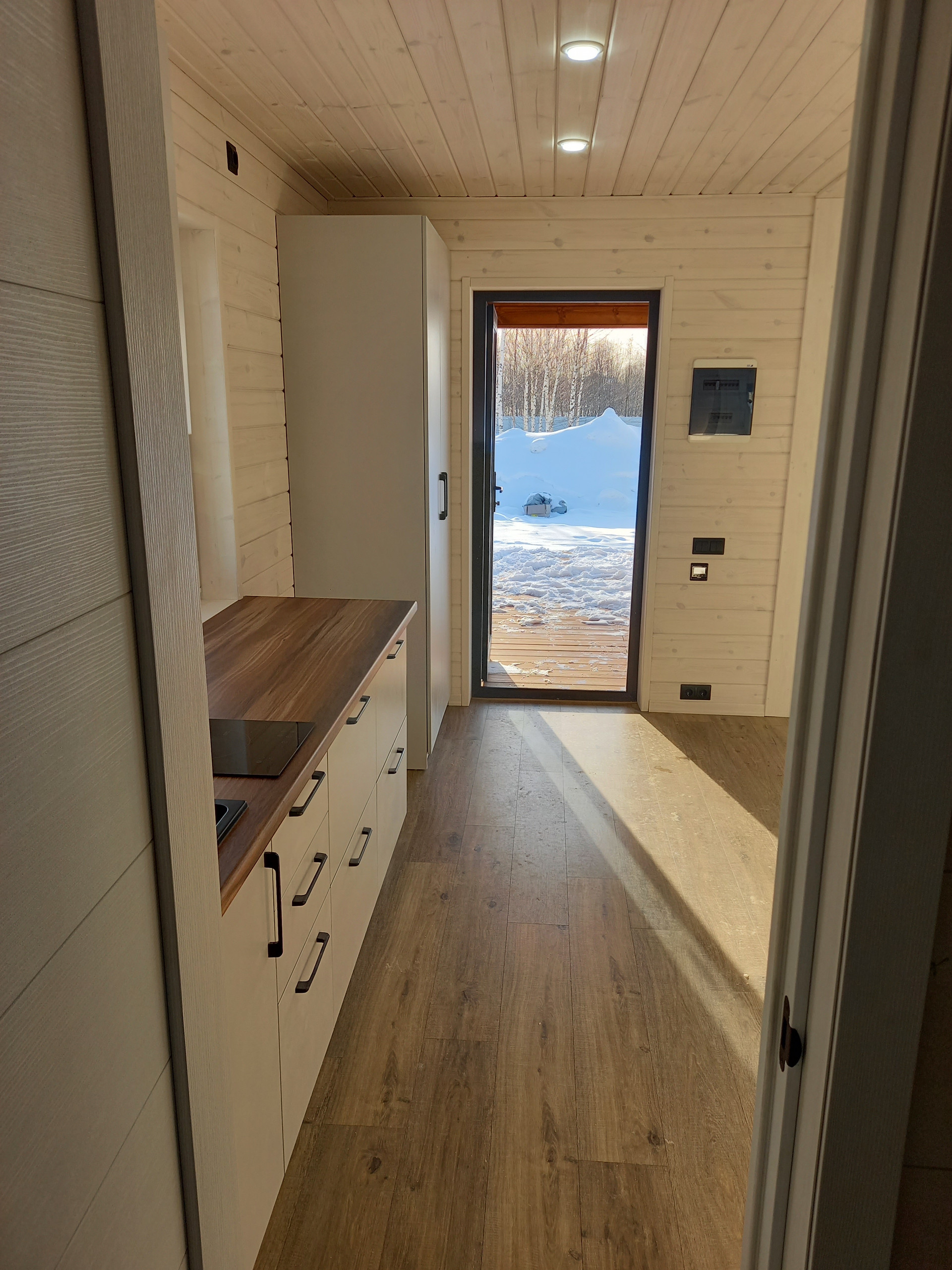 Отопление - теплые полы с дистанционным управлением. В доме сделана чистовая отделка из натурального дерева. Санузел с местом для стиральной машинки. Кухня, совмещенная с просторной гостиной, оборудованна мебелью и техникой.
