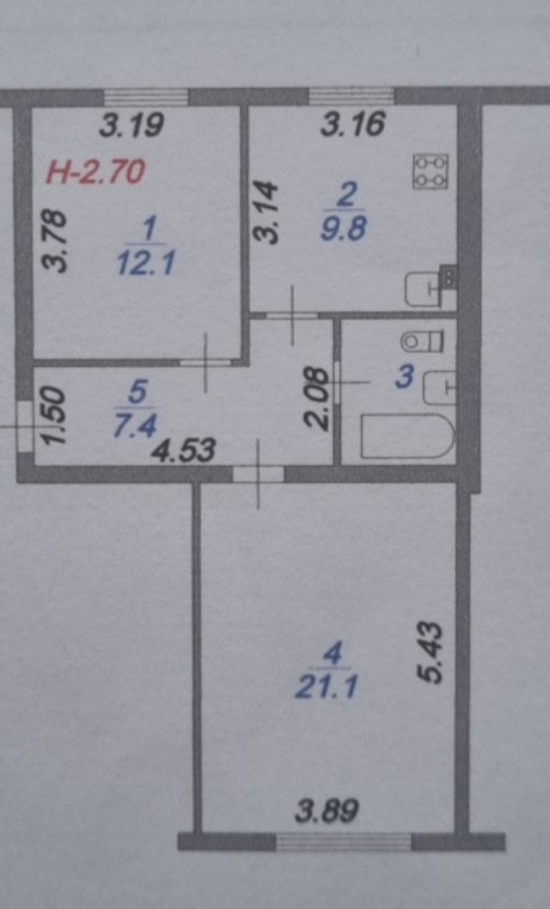 Высота потолков 2.7 м
