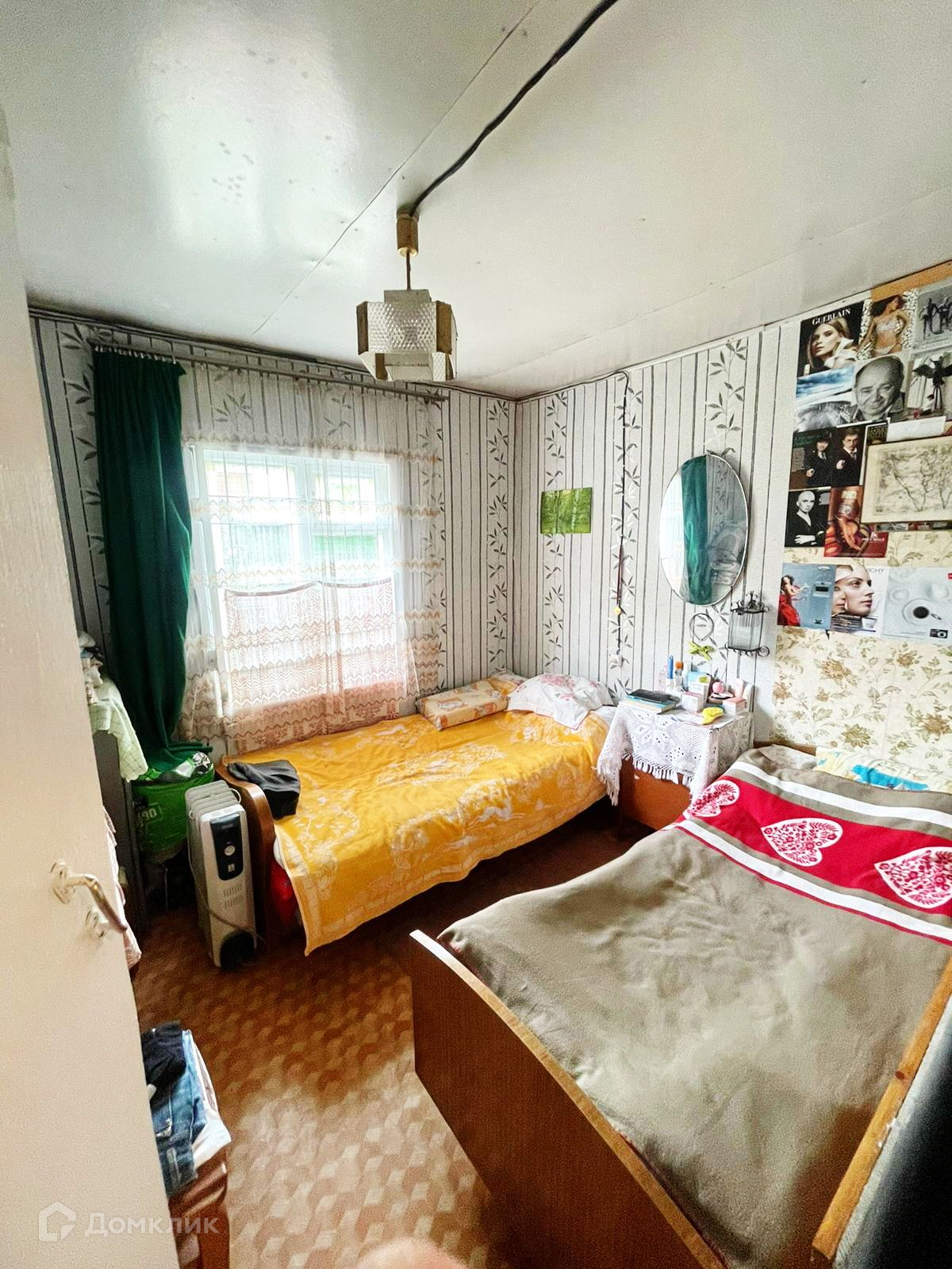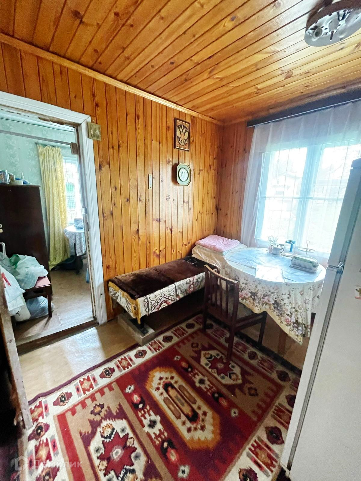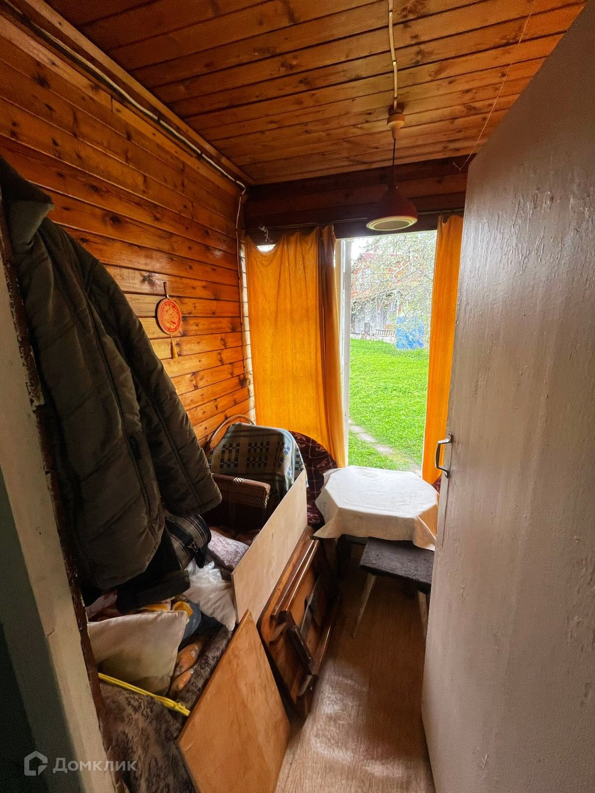 Внутри - частично вагонка, частично обои