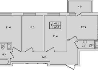 Общая площадь: 66.4 м2