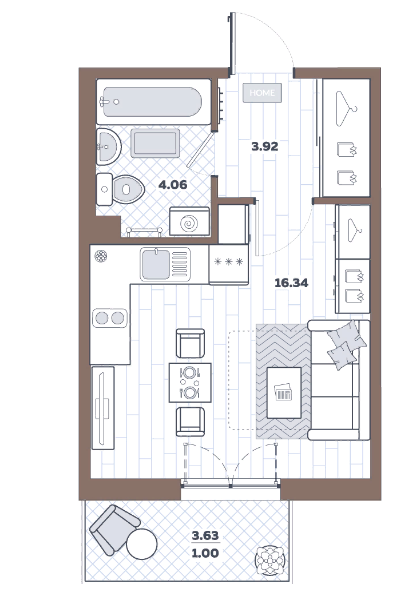 Общая площадь 27.95 м2