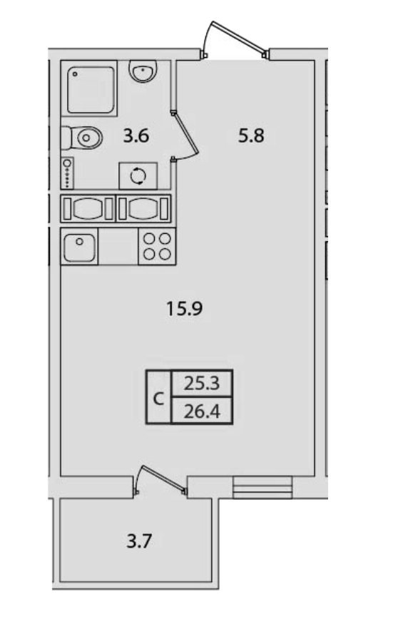 Общая площадь 26.4 м2