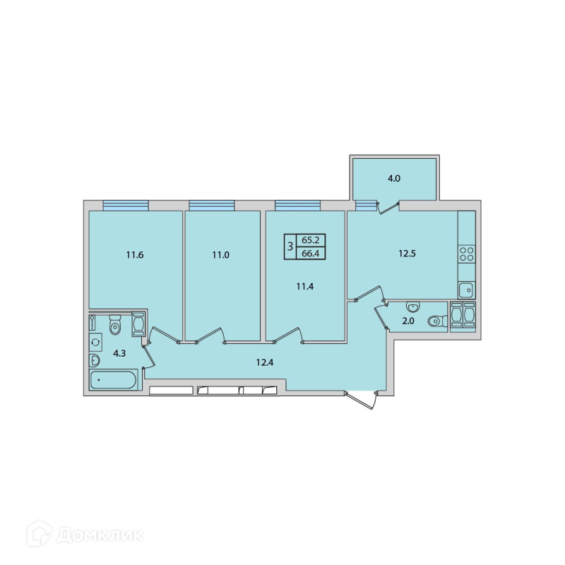 Общая площадь 66.4 м2