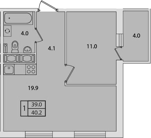 Площадь кухни 19.9 м2