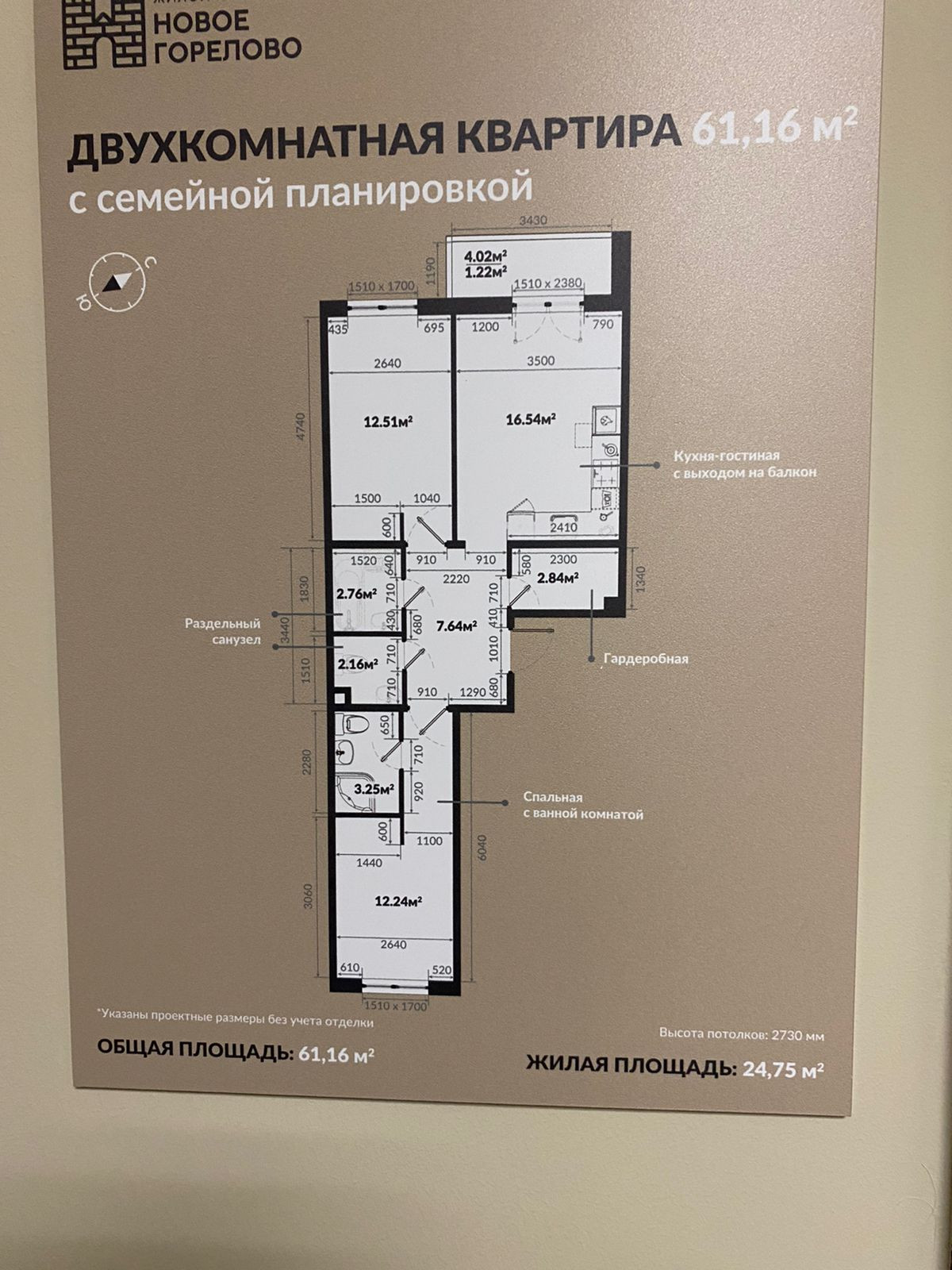 Общая площадь 61.16 м2