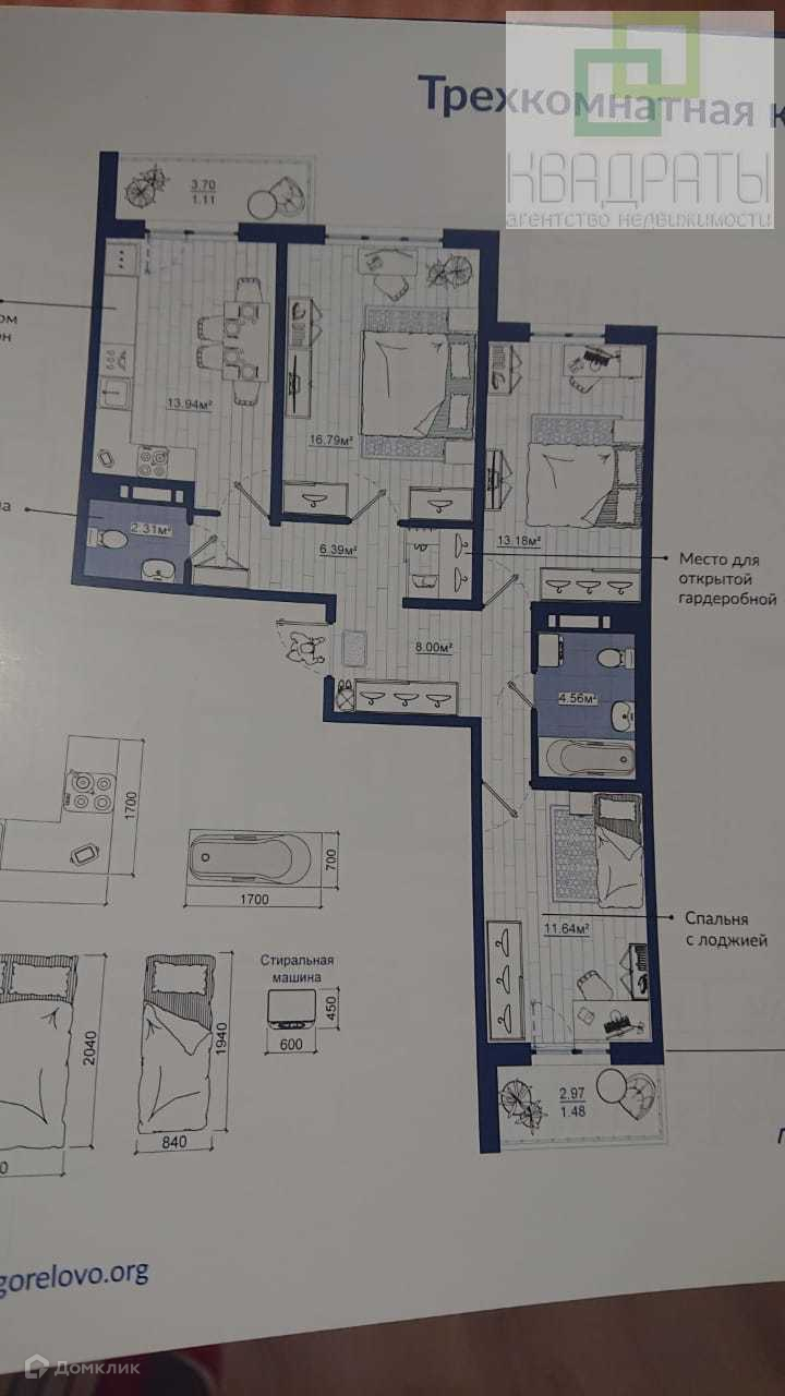 3-комнатная квартира, 75.3 м2, этаж 1 / 16, на продажу в посёлке Новогорелово, бульвар Десантника Вадима Чугунова, 8к1