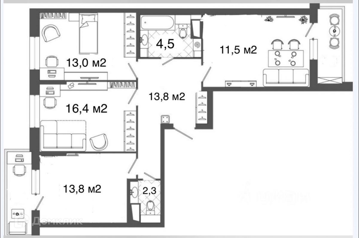 В продаже 3х комнатная просторная, площадью 75.3 м2 квартира, в новом доме 2020 года. ЖК Новое Горелово.