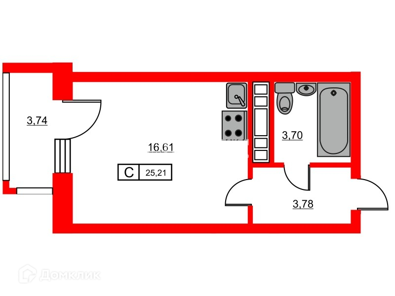 Общая площадь 23.6 м2