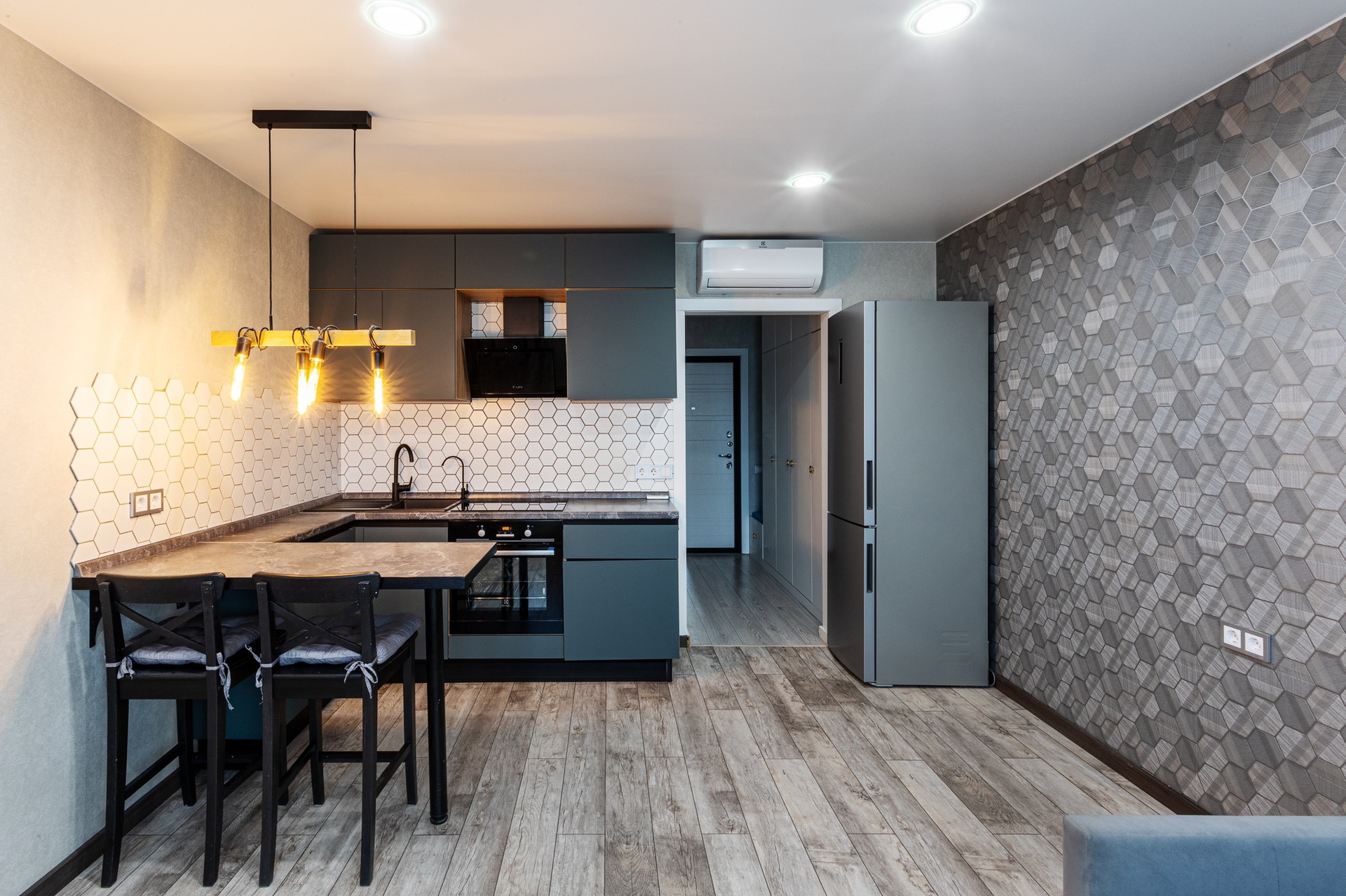 +++Кухня зона оборудована барной стойкой на заказ. Кухонный гарнитур с фасадами fenix, оборудован доводчиками, подсветка кухонной зоны сенсорной кнопкой с регулировкой уровня освещения. Установлен фильтр для воды Барьер. Все это позволит вам приятно готовить и проводить время.