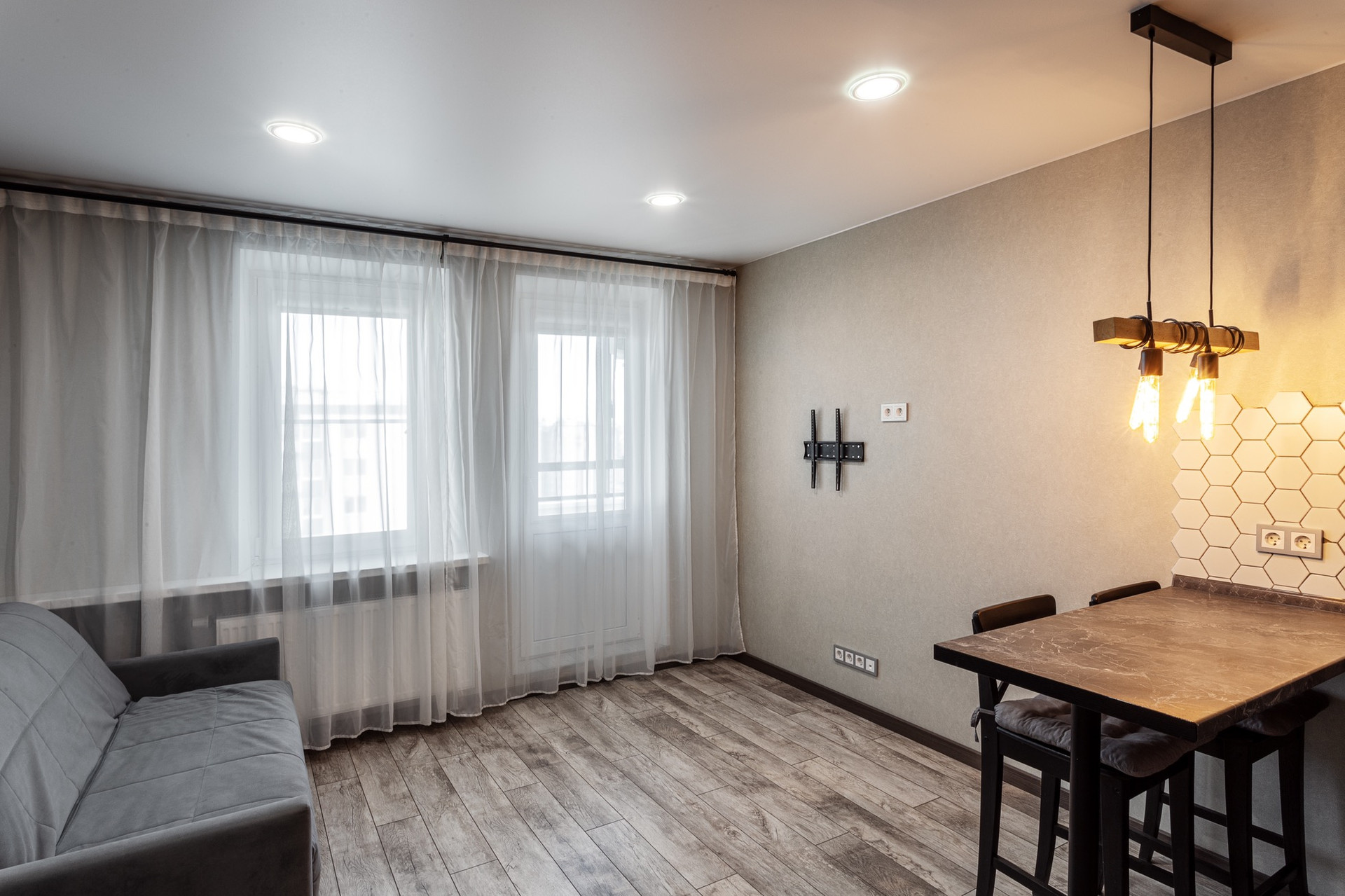 Натяжные потолки, пол влагостойкий ламинат 33 класса.