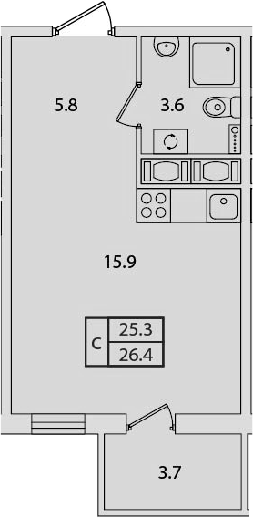 Общая площадь 26.4 м2
