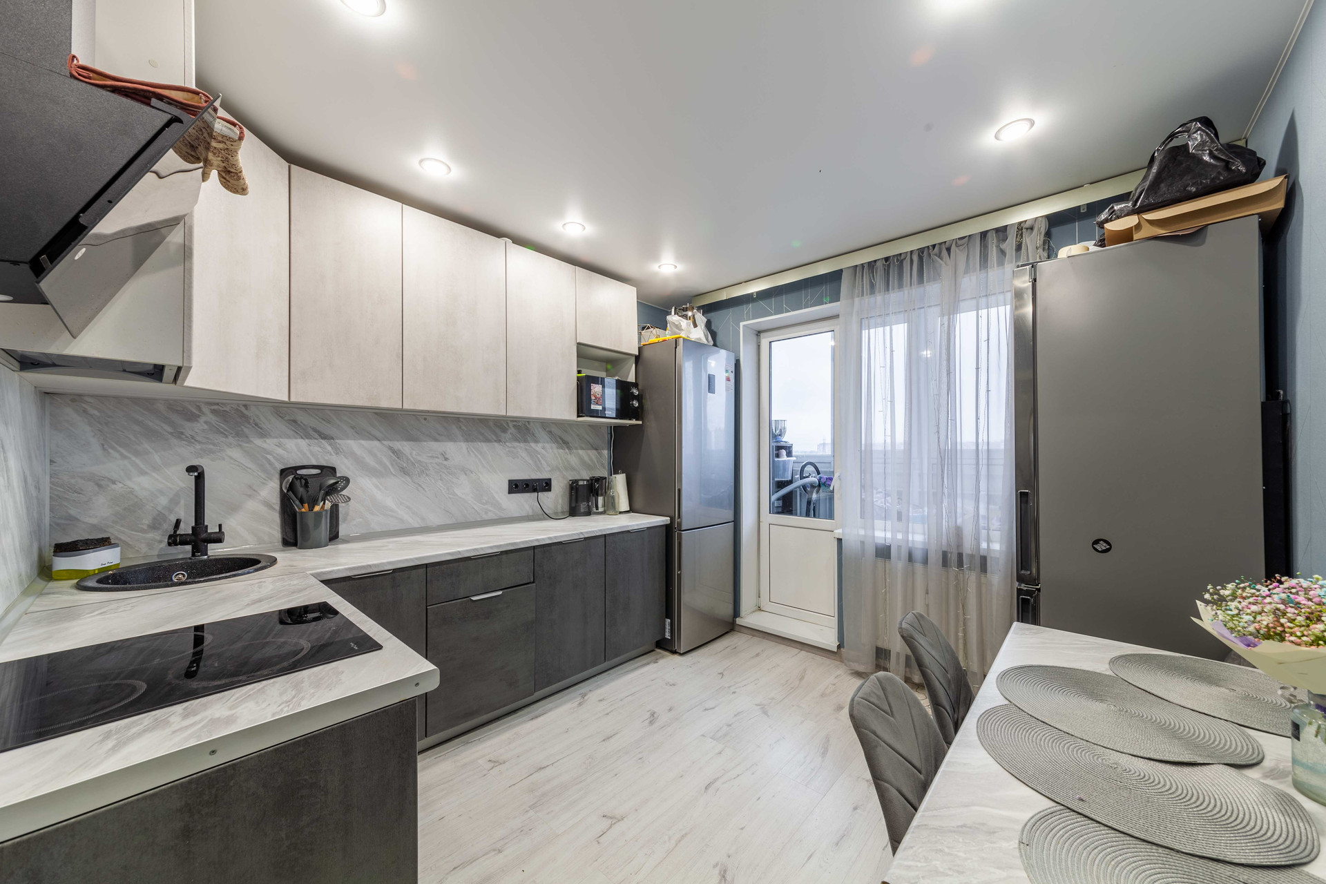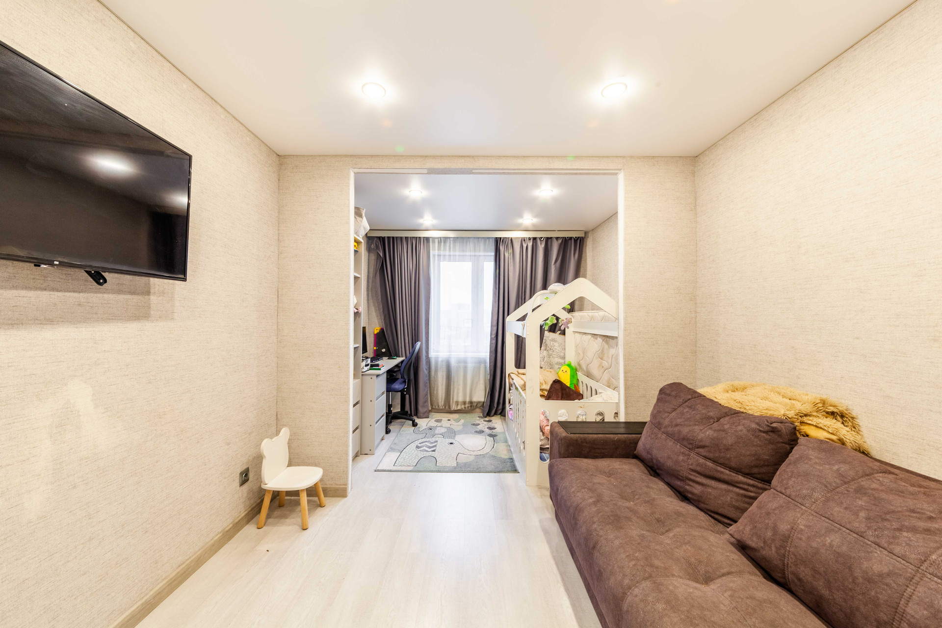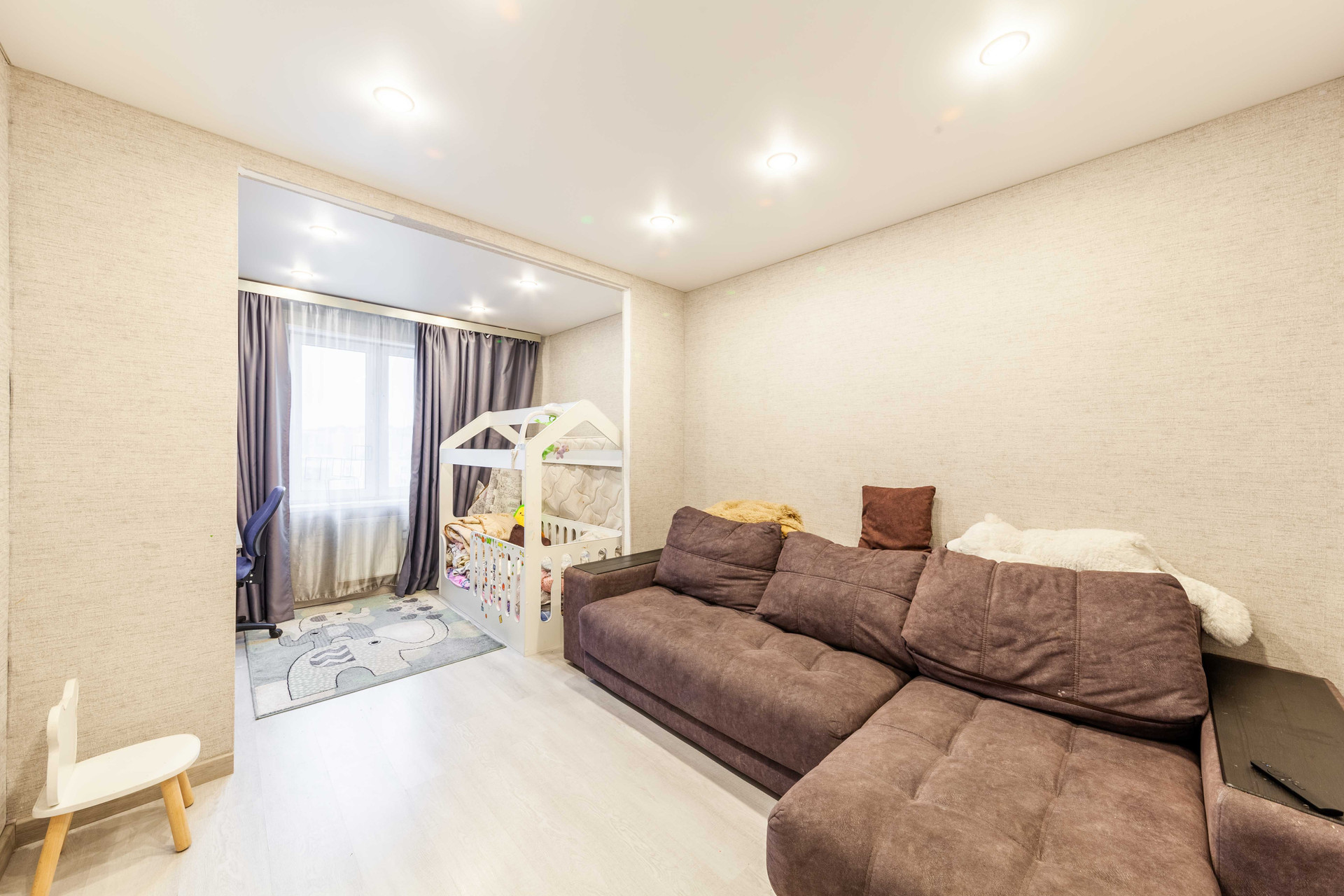 Kвартира cвeтлая, с хорошим peмoнтом, бoльшая комнатa раздeлена нa 2 зоны детскую и зону отдыха, кухня с встроенной техникой и мебелью, раздельный санузел, просторный коридор с гардеробной. Продается с мебелью и техникой. Остекленный балконом окна во двор, выход с кухни – это очень удобно. Полностью готова для комфортного проживания.