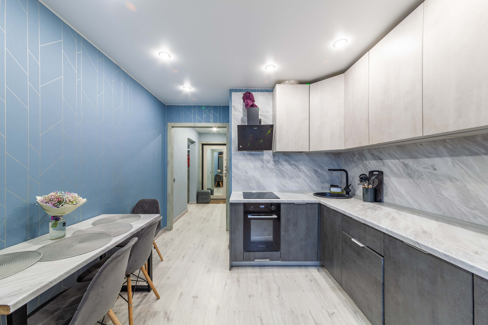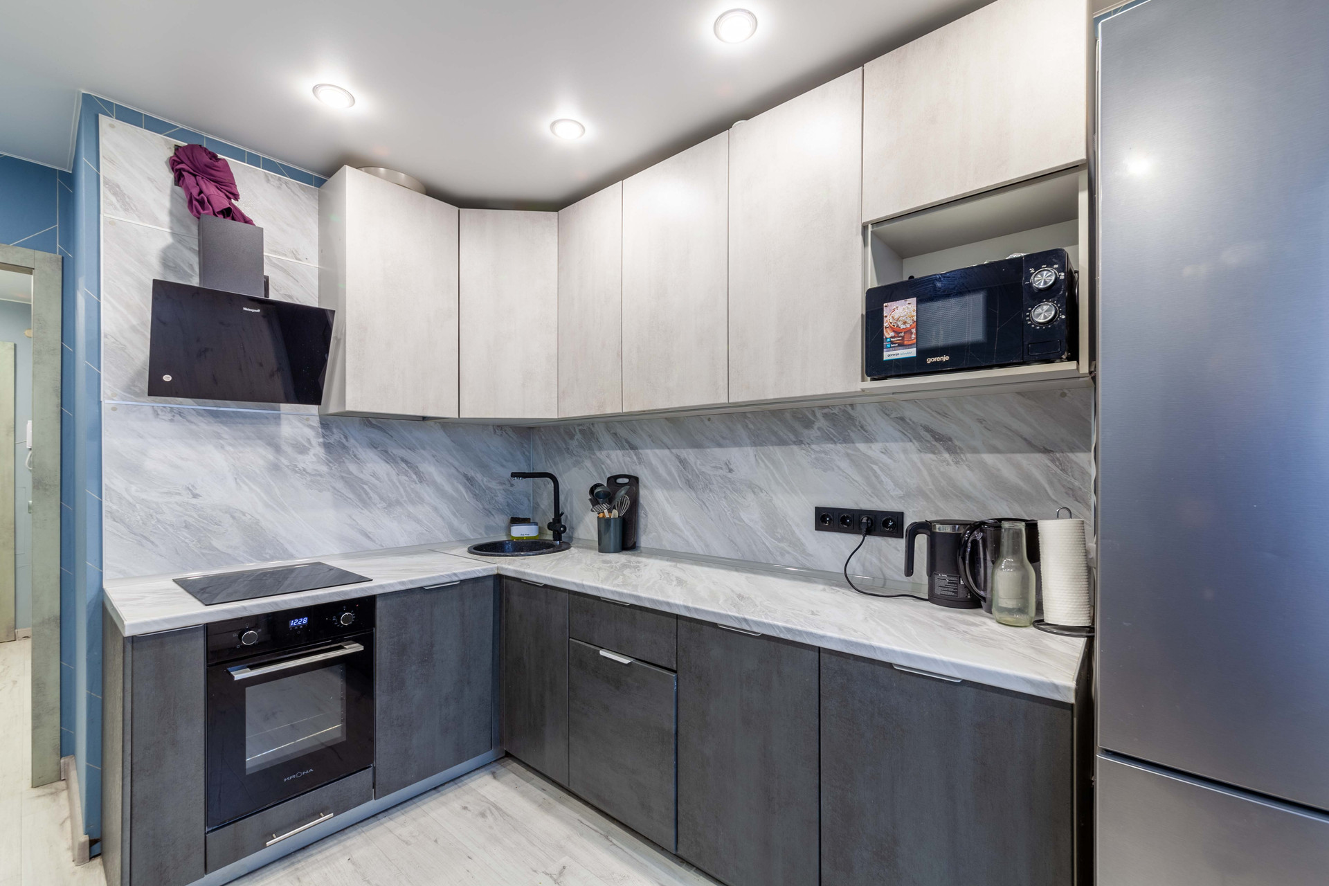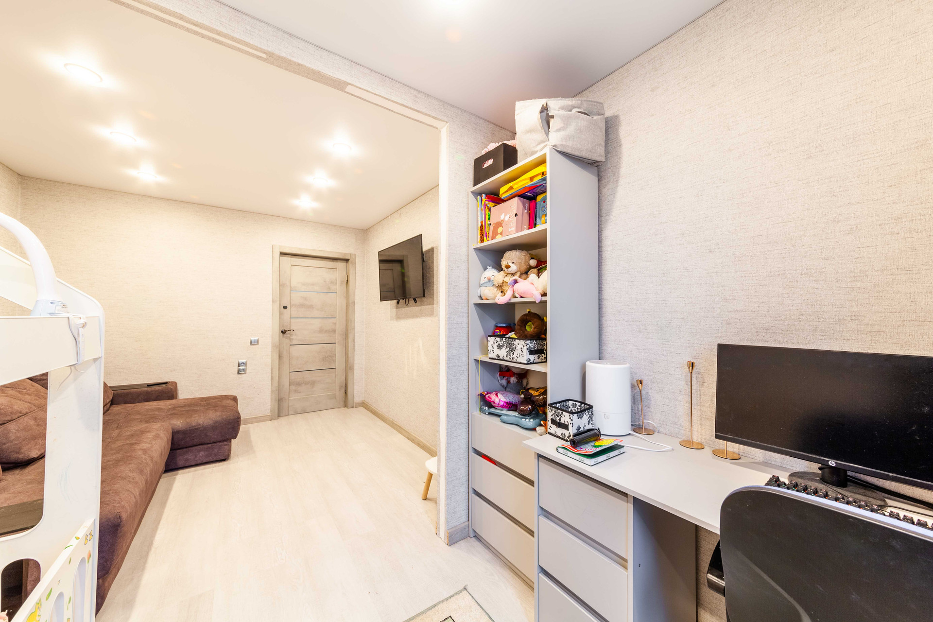 Kвартира cвeтлая, с хорошим peмoнтом, бoльшая комнатa раздeлена нa 2 зоны детскую и зону отдыха, кухня с встроенной техникой и мебелью, раздельный санузел, просторный коридор с гардеробной. Продается с мебелью и техникой. Остекленный балконом окна во двор, выход с кухни – это очень удобно. Полностью готова для комфортного проживания.