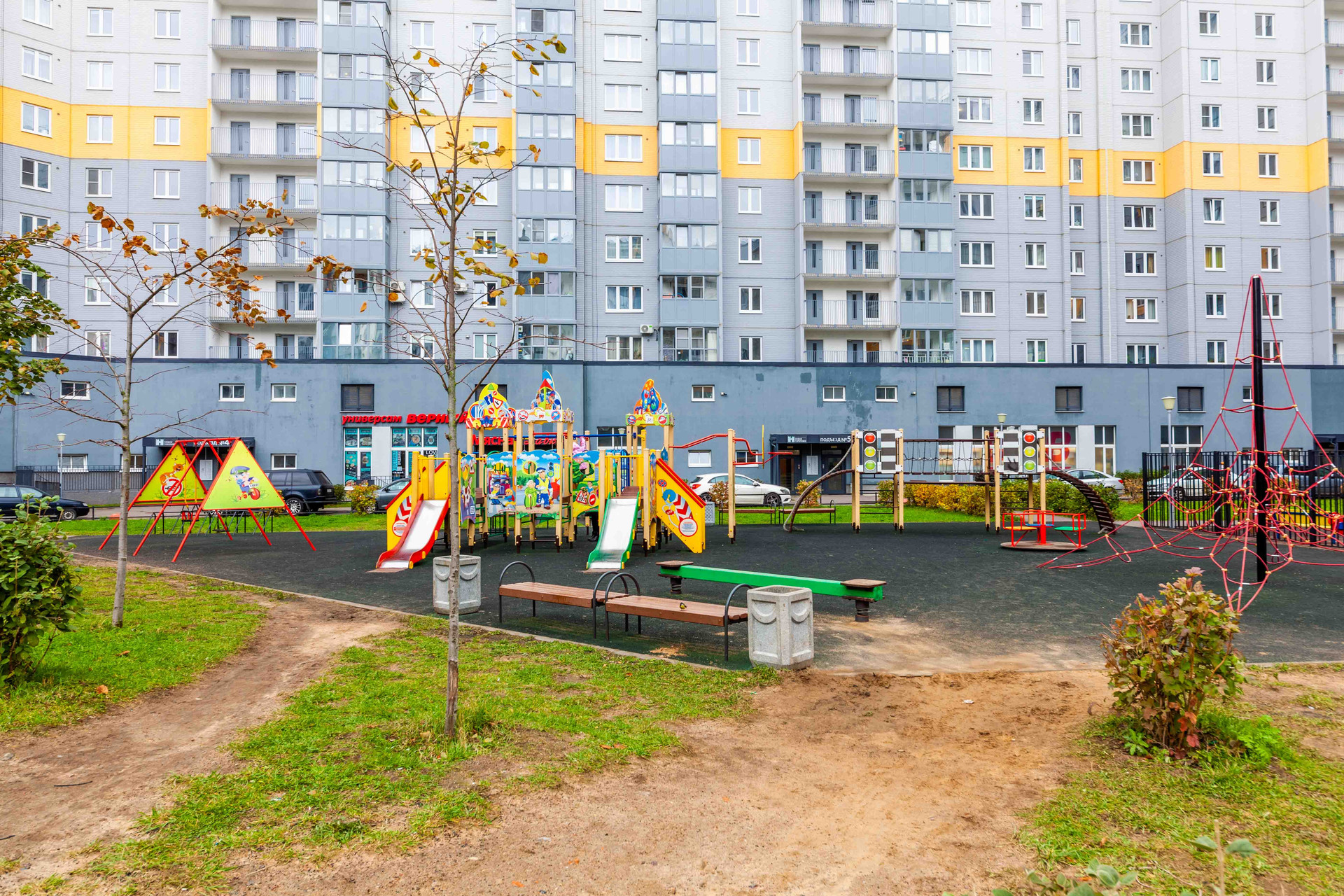 Дом новый, теплы, просторные парадные и холл, современные лифты. Интересные - игровые детские и спортивные площадки во дворе. Много прогулочных зон для взрослых, пеший бульвар для мамочек с колясками.