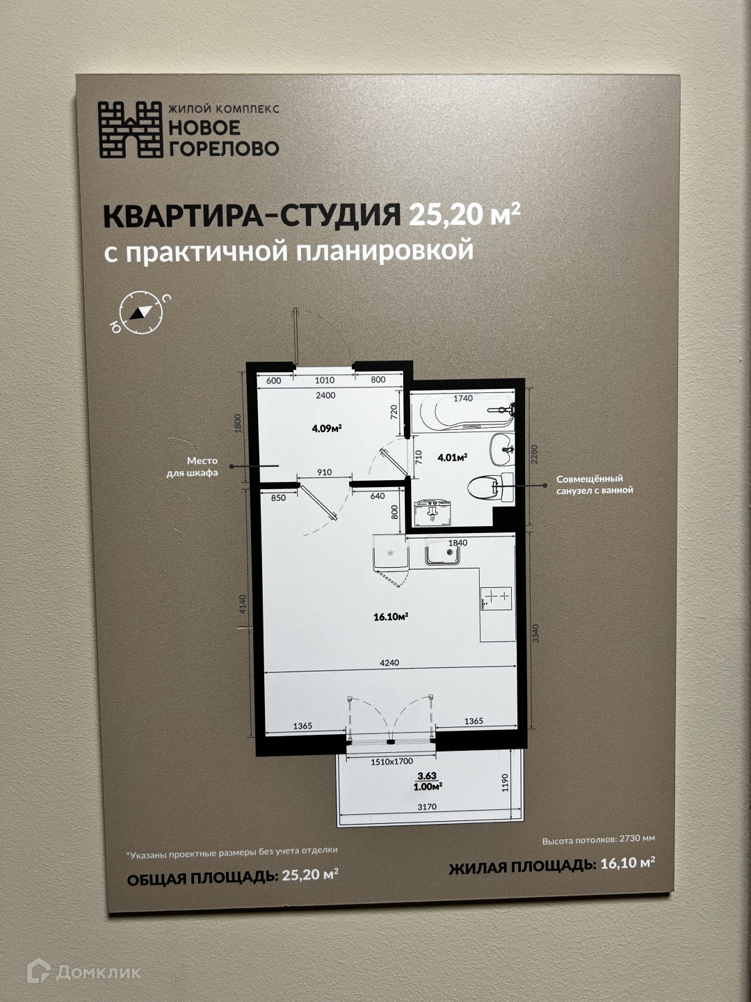Общая площадь 25.2 м2