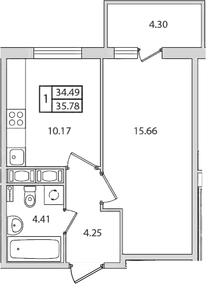 Общая площадь 35.78 м2