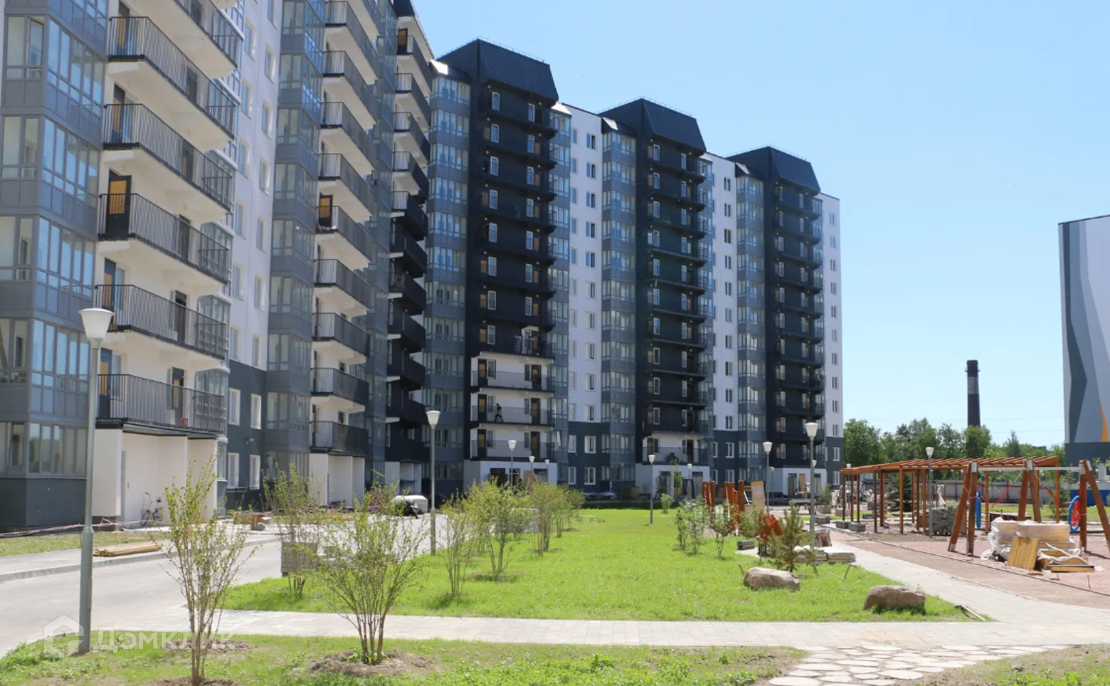 - Придомовая территория оборудована для отдыха и детских игр