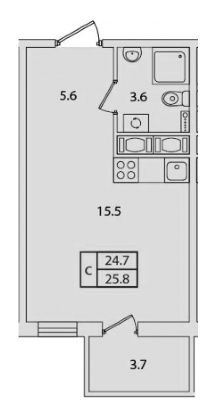Общая площадь 25.8 м2