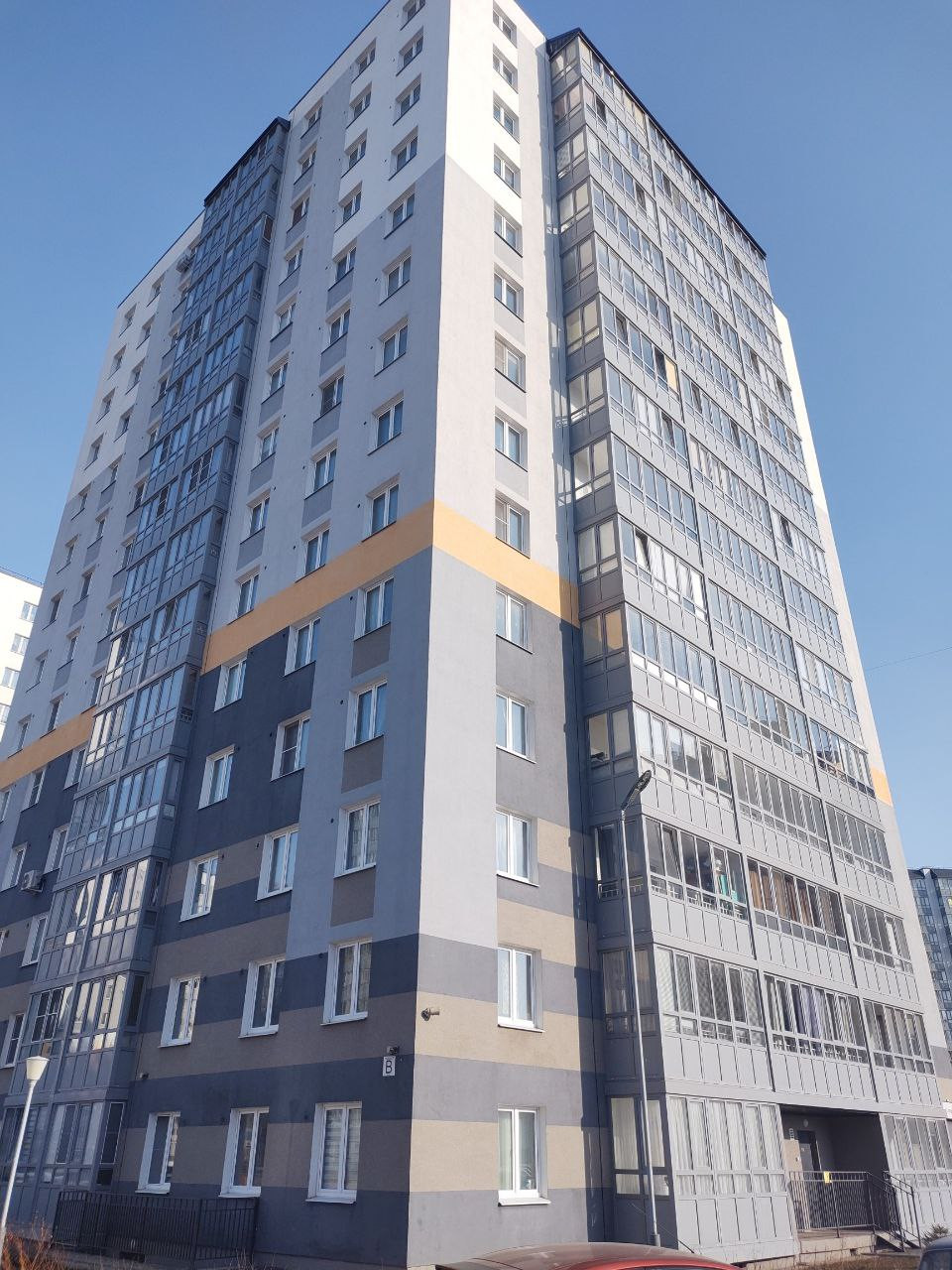 Дом новый, теплы, чистые парадные и большой холл, современные лифты. Интересные - игровые детские и спортивные площадки во дворе. Много прогулочных зон для взрослых, пеший бульвар для мамочек с колясками. Прекрасны, новый, современный район города.