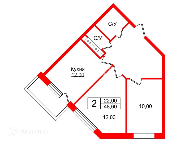 Общая площадь 48.6 м2