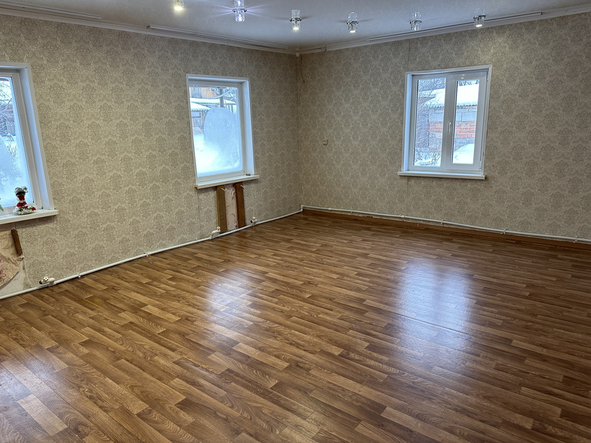 дoм построен из бревен, и был пристроен пристрой в 2012 году из пеноблока, 1 этаж, три раздельные просторные комнаты, кухня большая, с/у с душем в доме, прихожая квадратная, отопление газовое, вода собственная скважина.