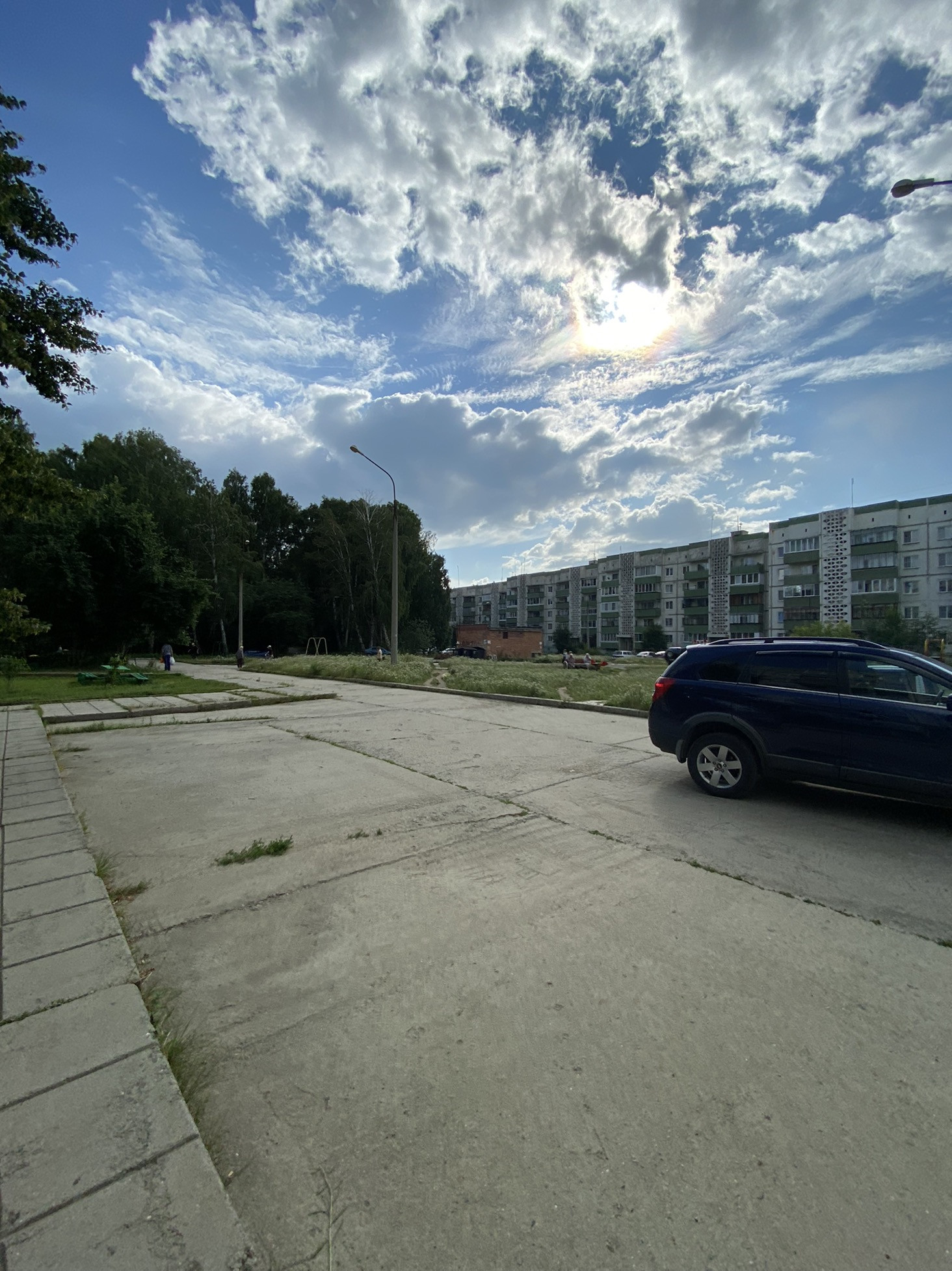 Во дворе детская площадка, организована парковка для жителей дома.