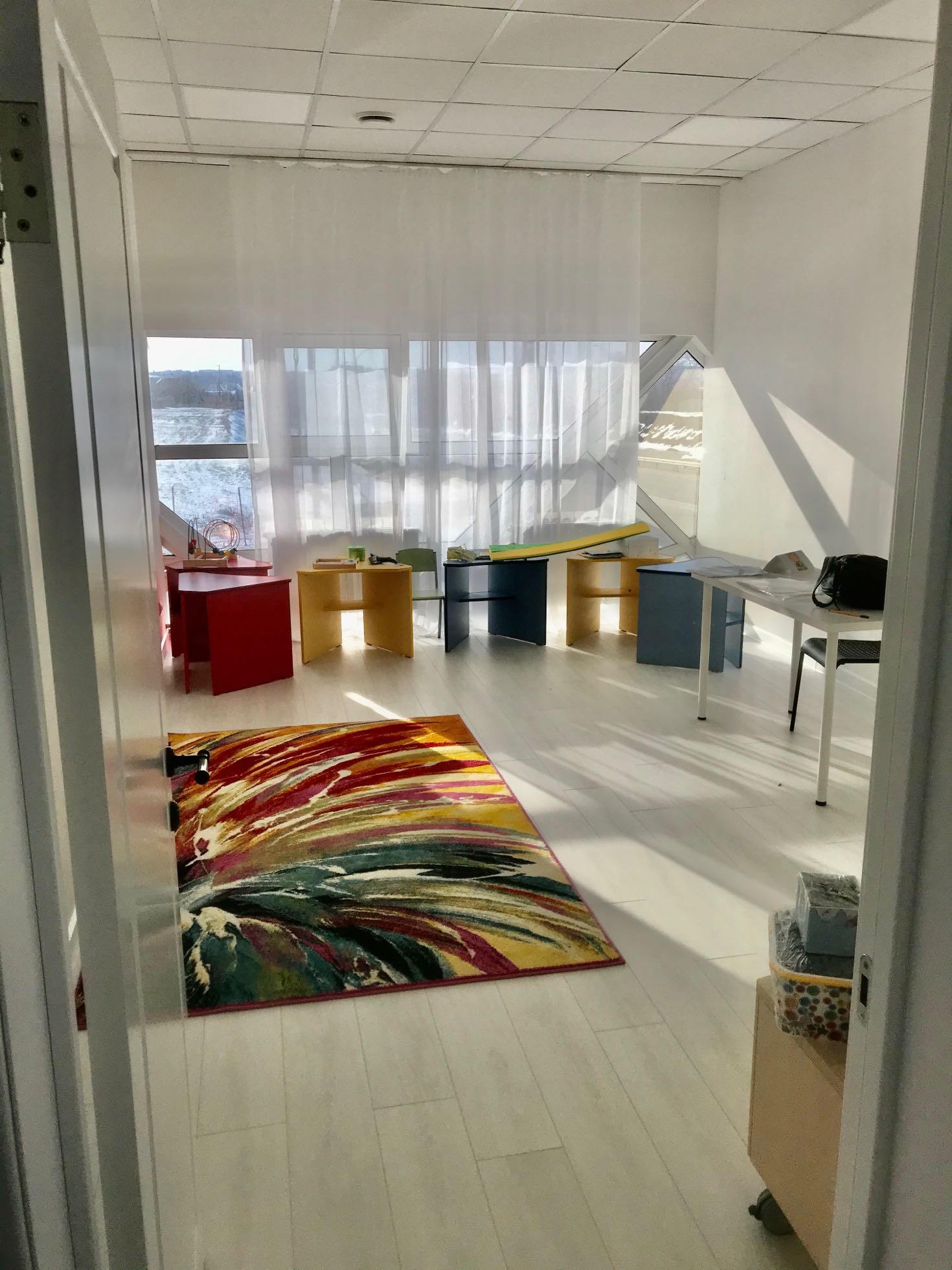 Располагаются на втором этаже в 2-этажном здании, на въезде в пос. Новогусельский, вдоль Усть-Курдюмской трассы.