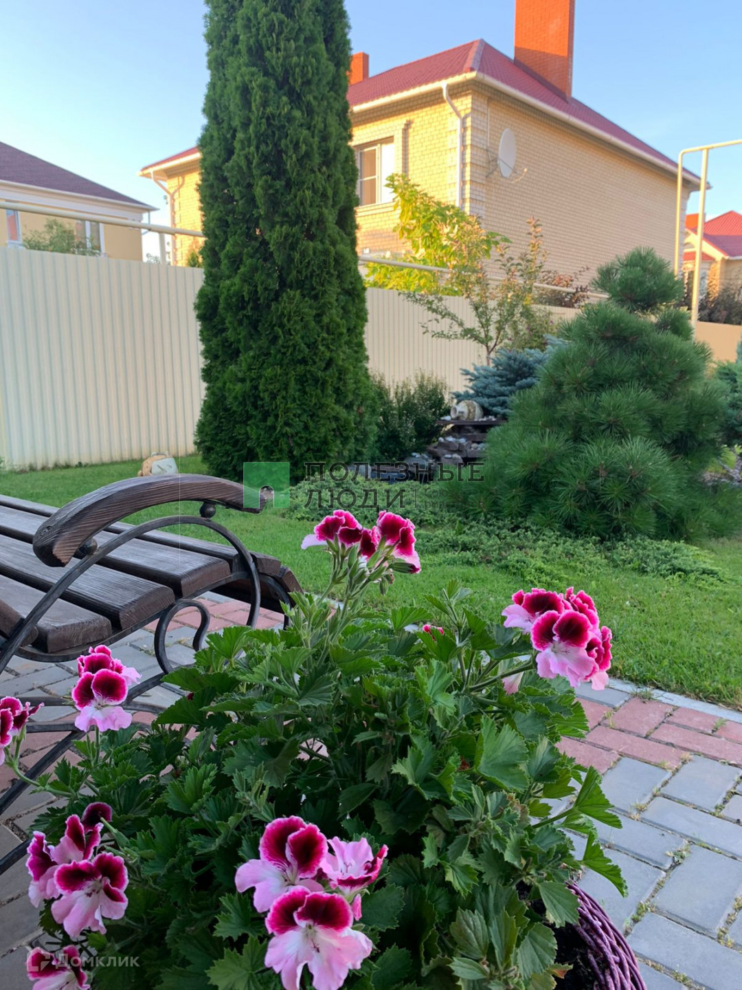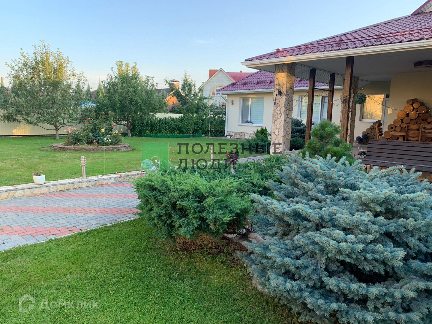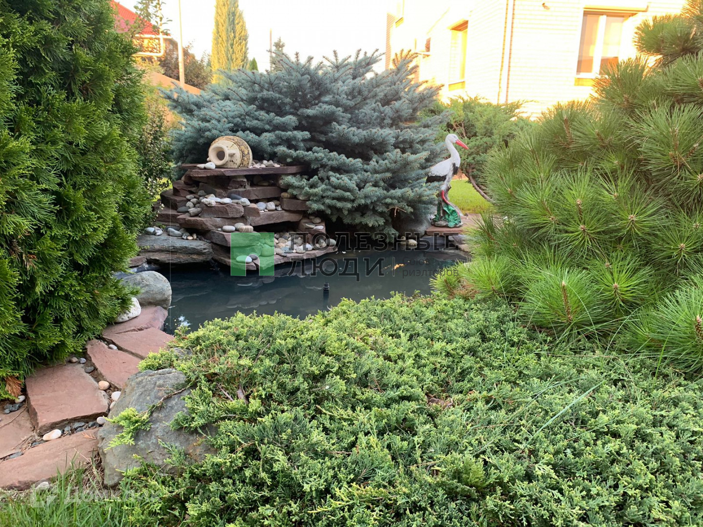 Полностью благоустроенная территория,  ландшафтный дизайн, автополив, небольшой огород, множество плодовых и декоративных растений, виноградник, розарий, пруд с фонтаном.