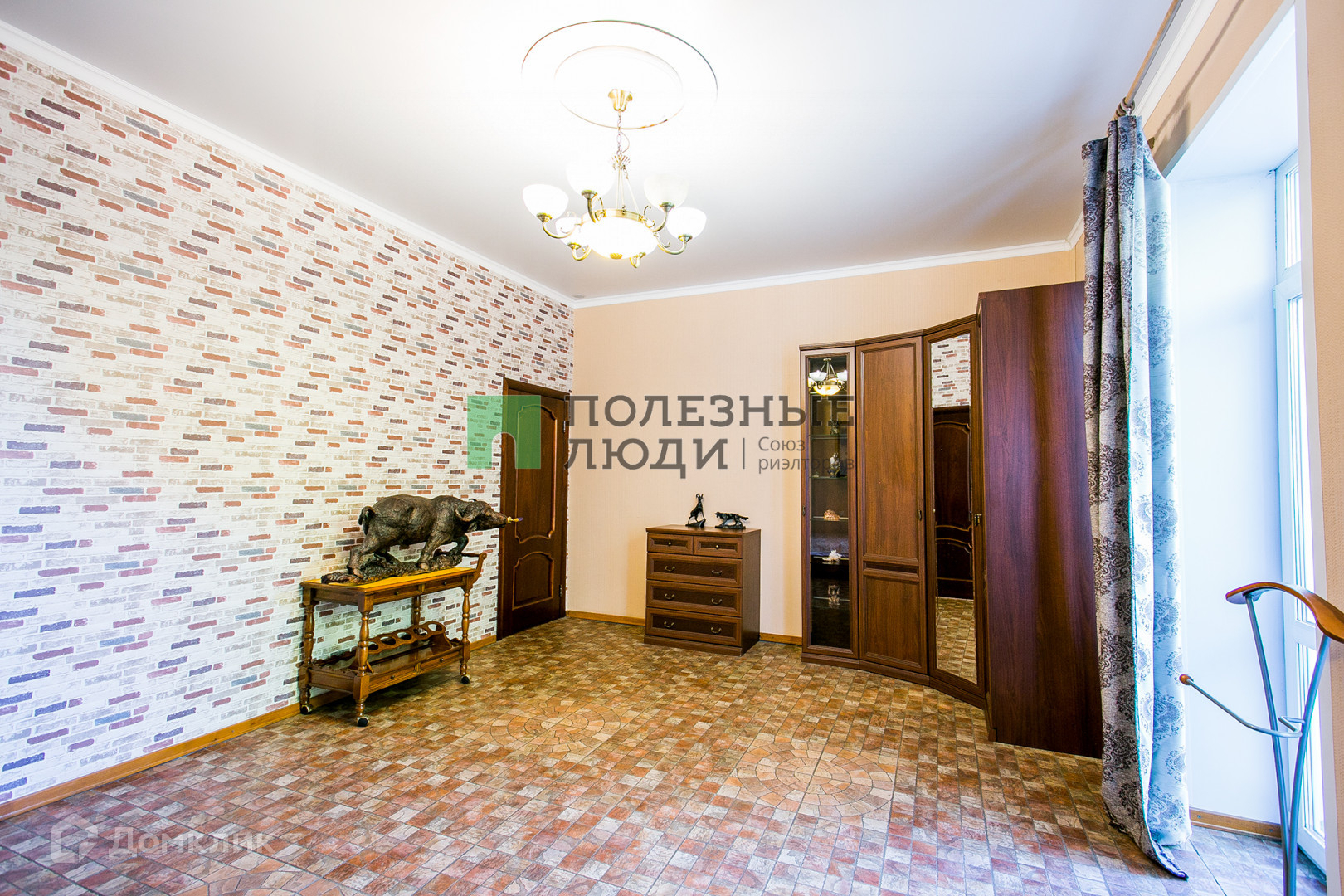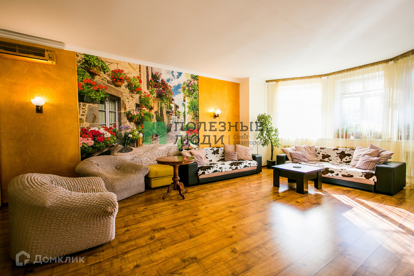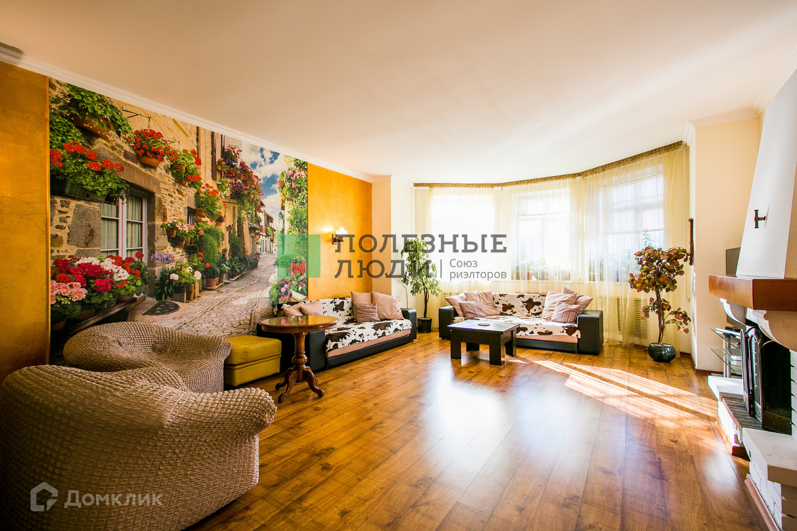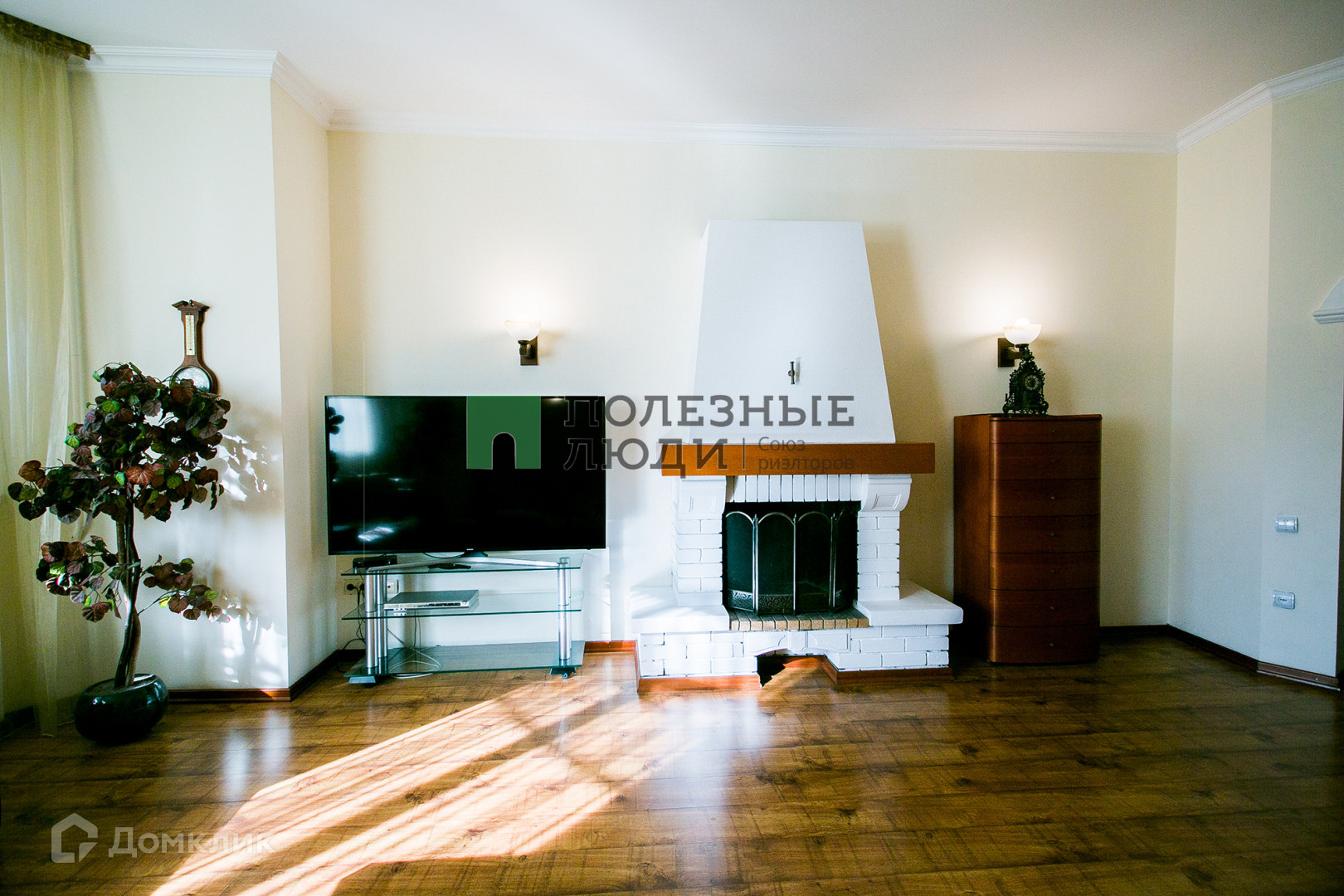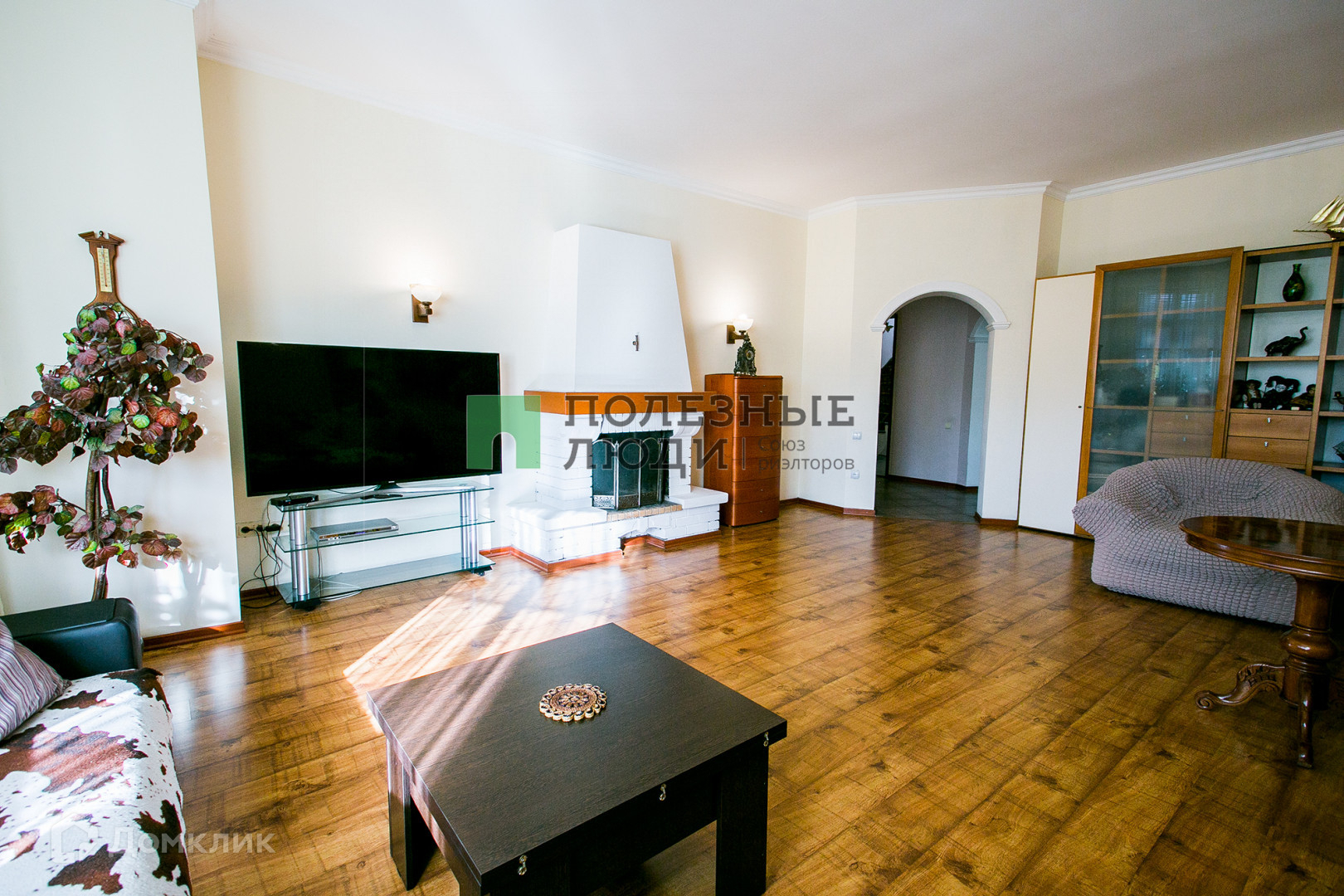 Просторная меблированная гостиная 42 кв. м. с действующим камином на дровах.