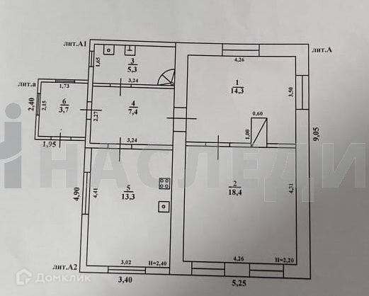 Общая площадь 62.4 м2