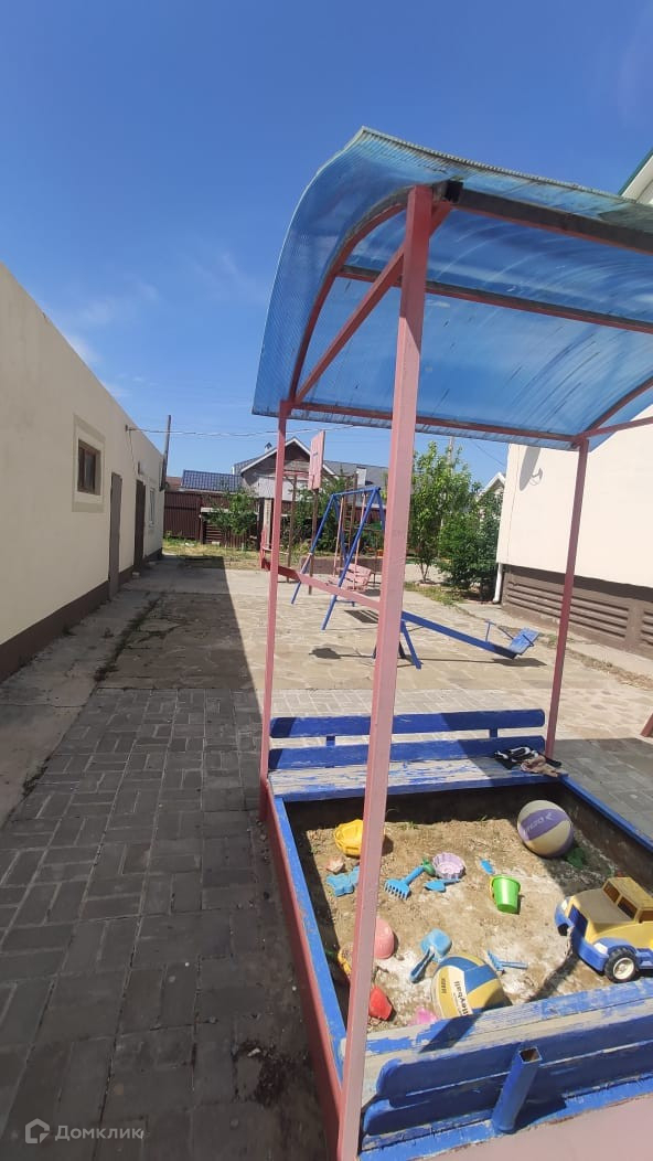 - Во дворе расположен гараж 70 кв.м с ямой, баня, детская площадка - качели, горка, песочница, детский домик. На заднем дворе расположена беседка, залита площадка под бассейн. Установлен летний душ. На территории участка имеется свободная зона 5 соток, на которой можно строить или разбить сад.