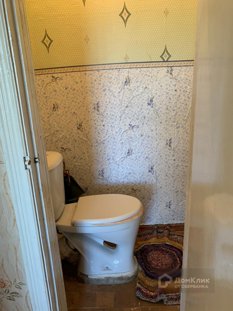 -Стены в туалете оклеены обоями