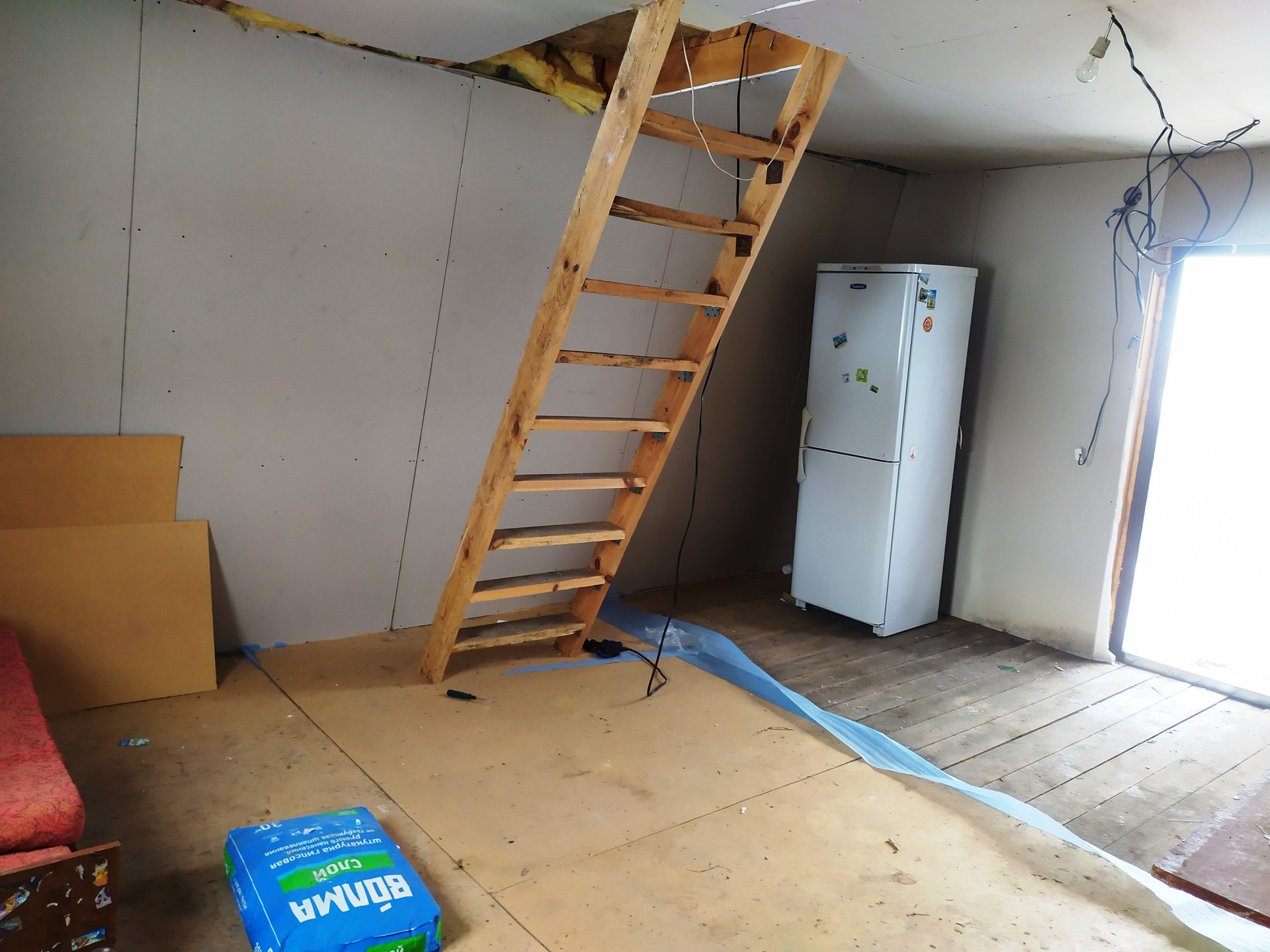 В дом заведено электричество .Окна ПВХ, дверь металлическая, есть стройматериалы для завершения строительства.