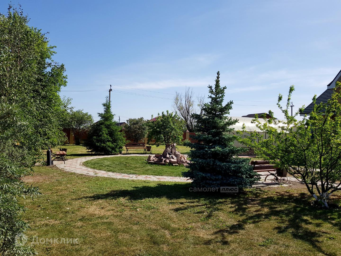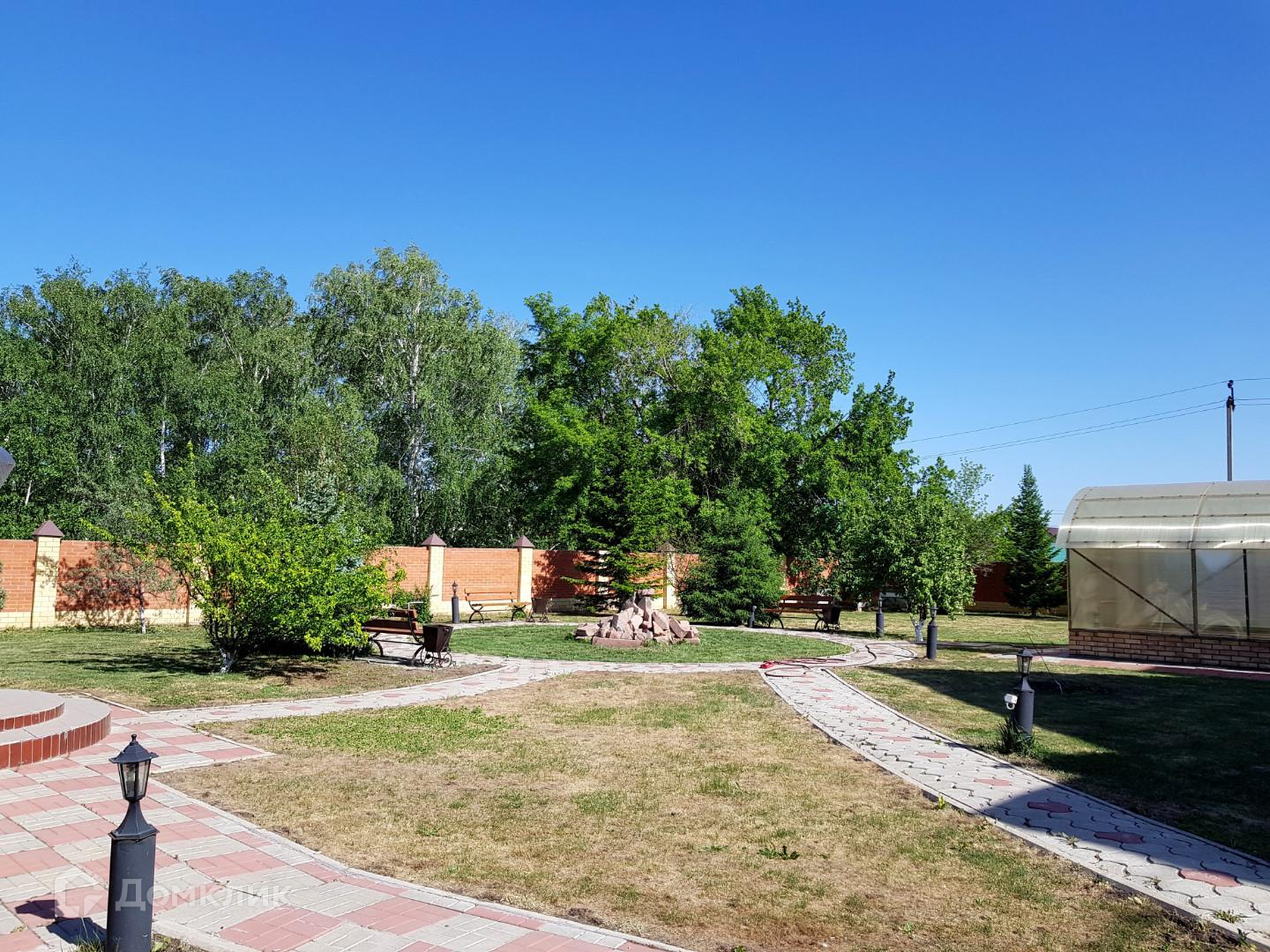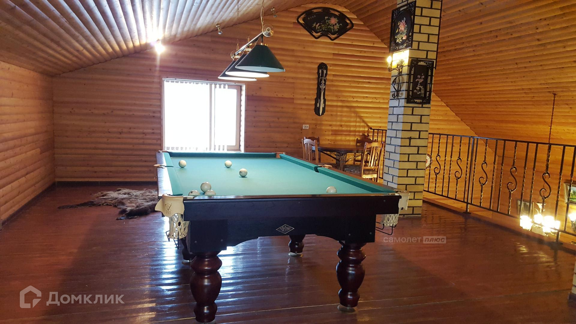 Отдельно стоящий банный комплекс включает в себя гостиную комнату, бассейн, баню и бильярдный зал. Также есть гараж на три автомобиля, две теплицы и мангальная зона. Все это расположено на благоустроенной и зеленой территории.