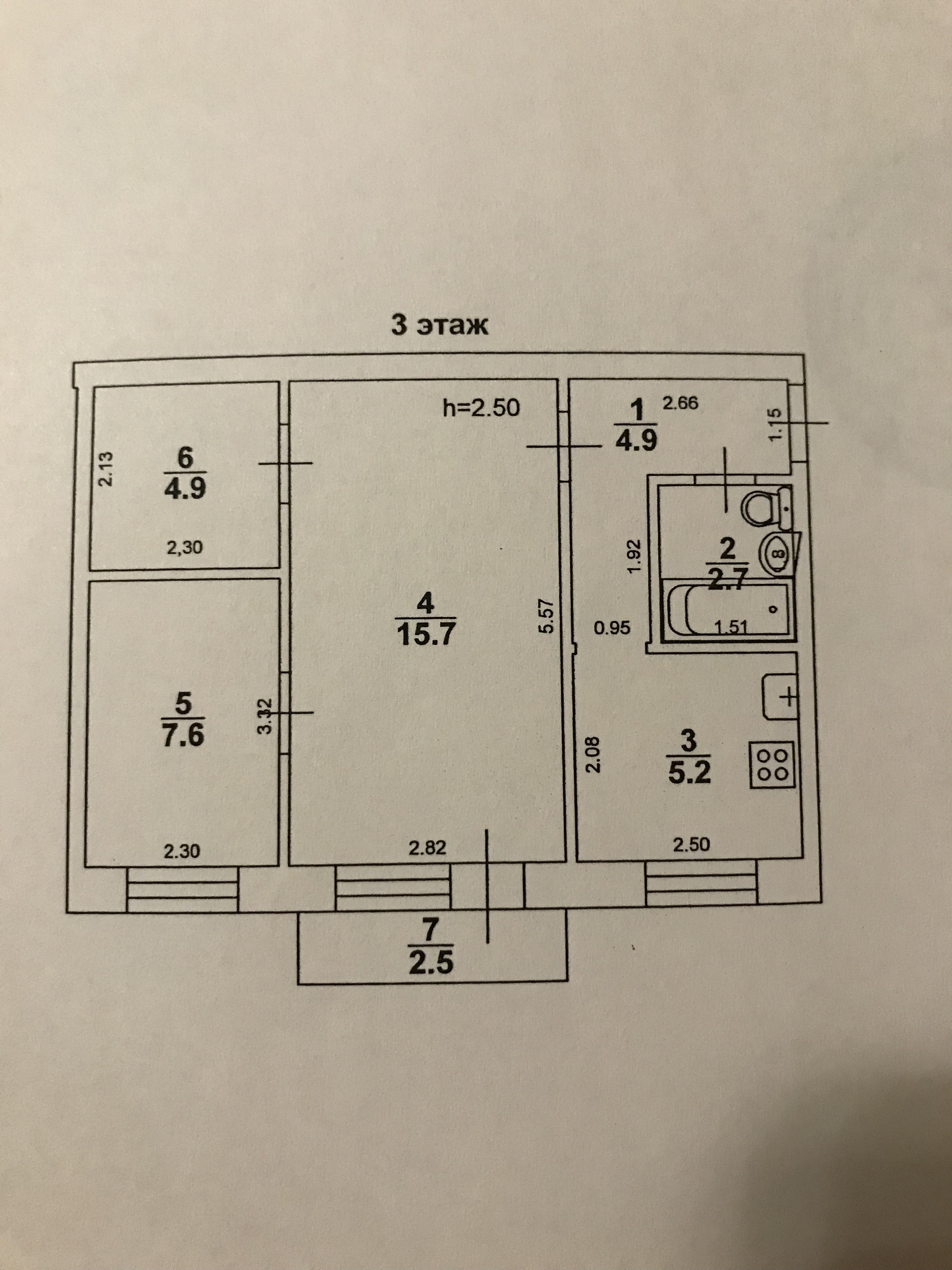 Высота потолков 2.5 м