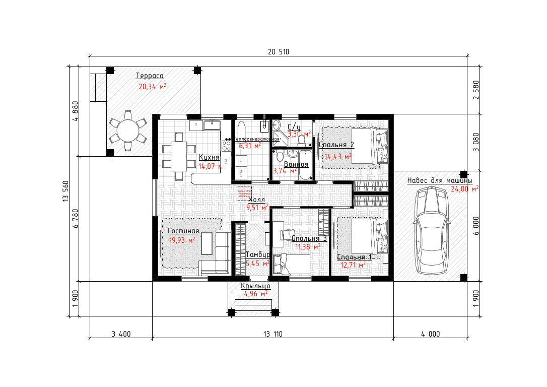навес, просторная терраса, 3 спальни, 150 кв.м