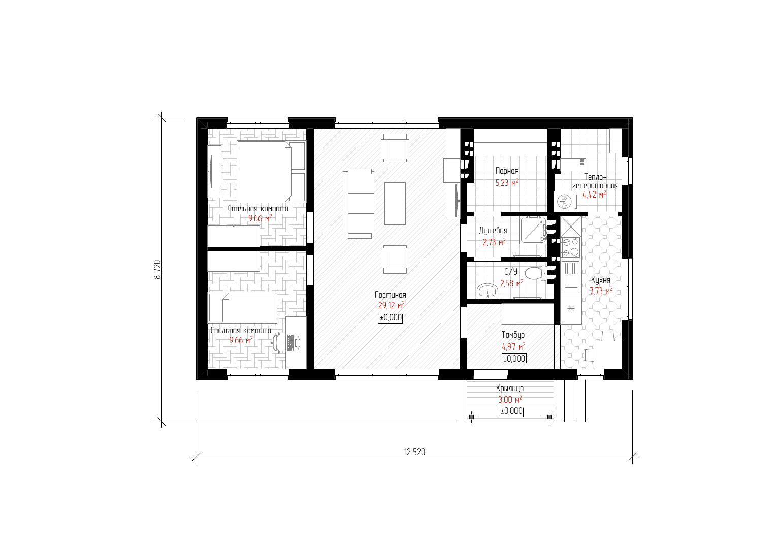 небольшой уютный домик на 3 спальни, разделение спальной зоны и гостевой, есть тамбур, 93м.кв