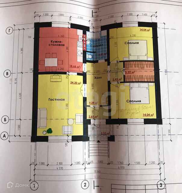 Функциональная планировка: 2 спальни, гостиная, гардеробная, кухня-столовая, холл, ванная комната, туалет. 1 этаж, но есть возможность сделать мансарду.