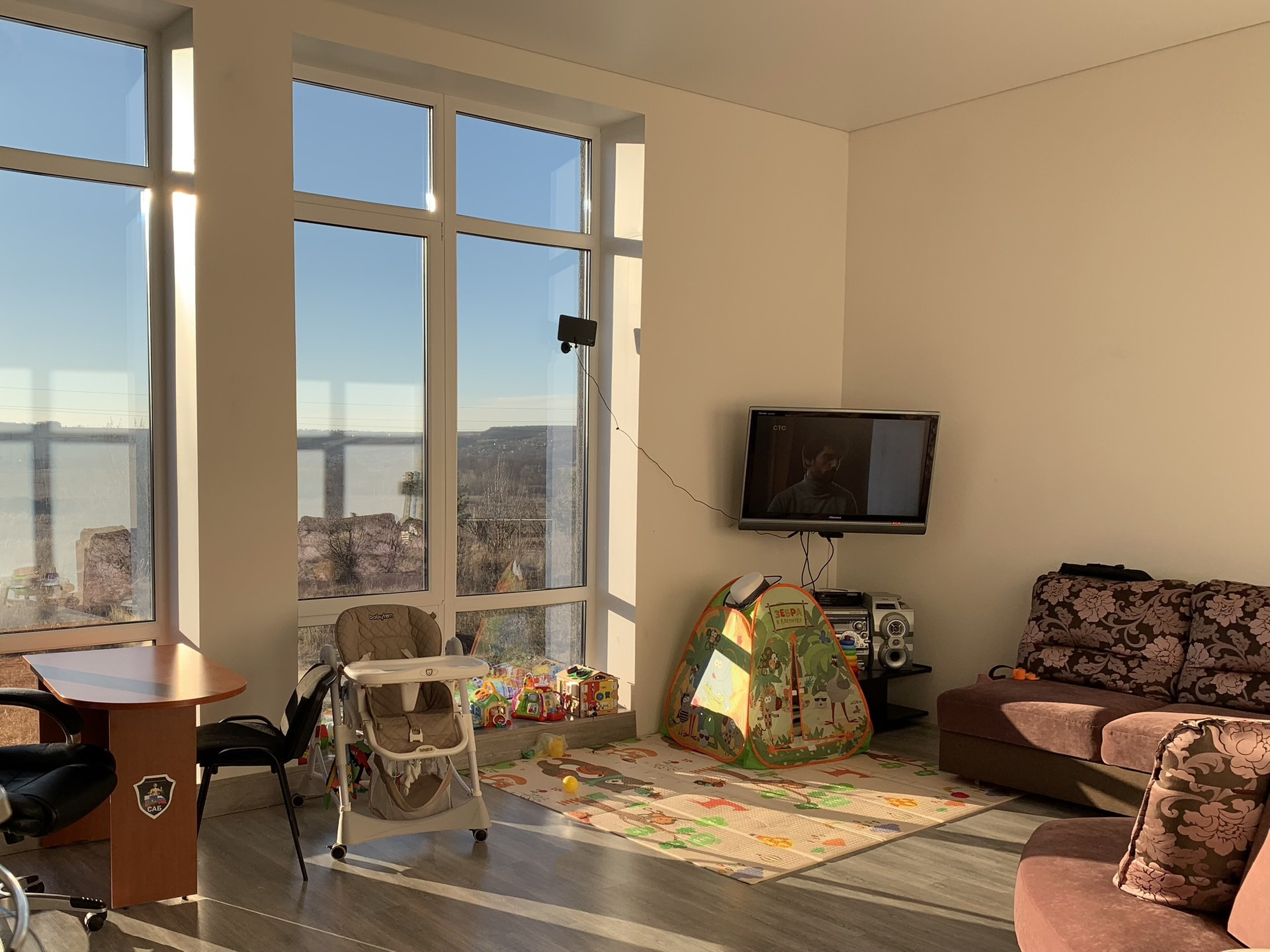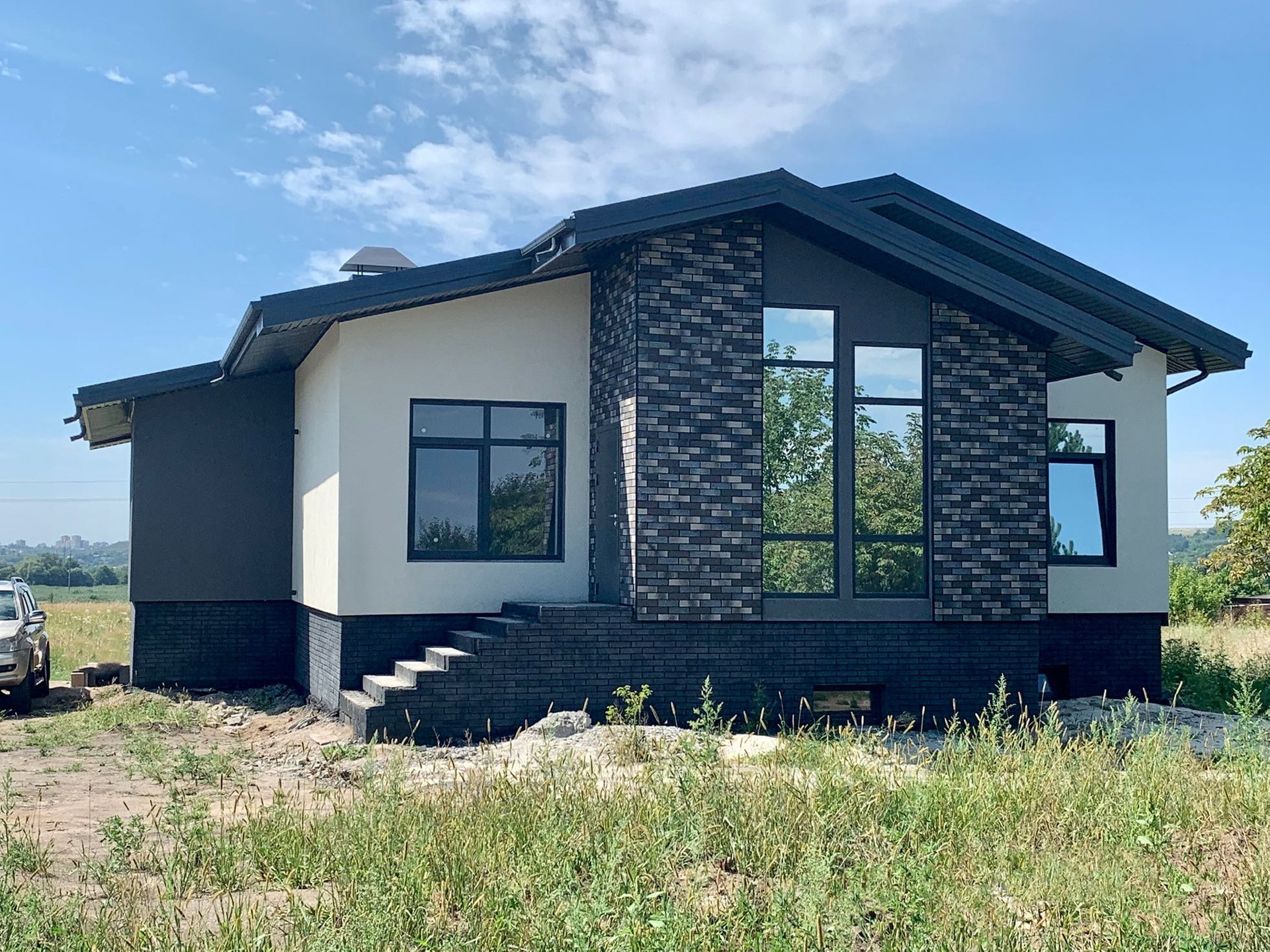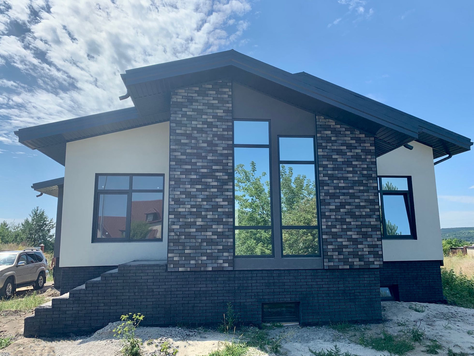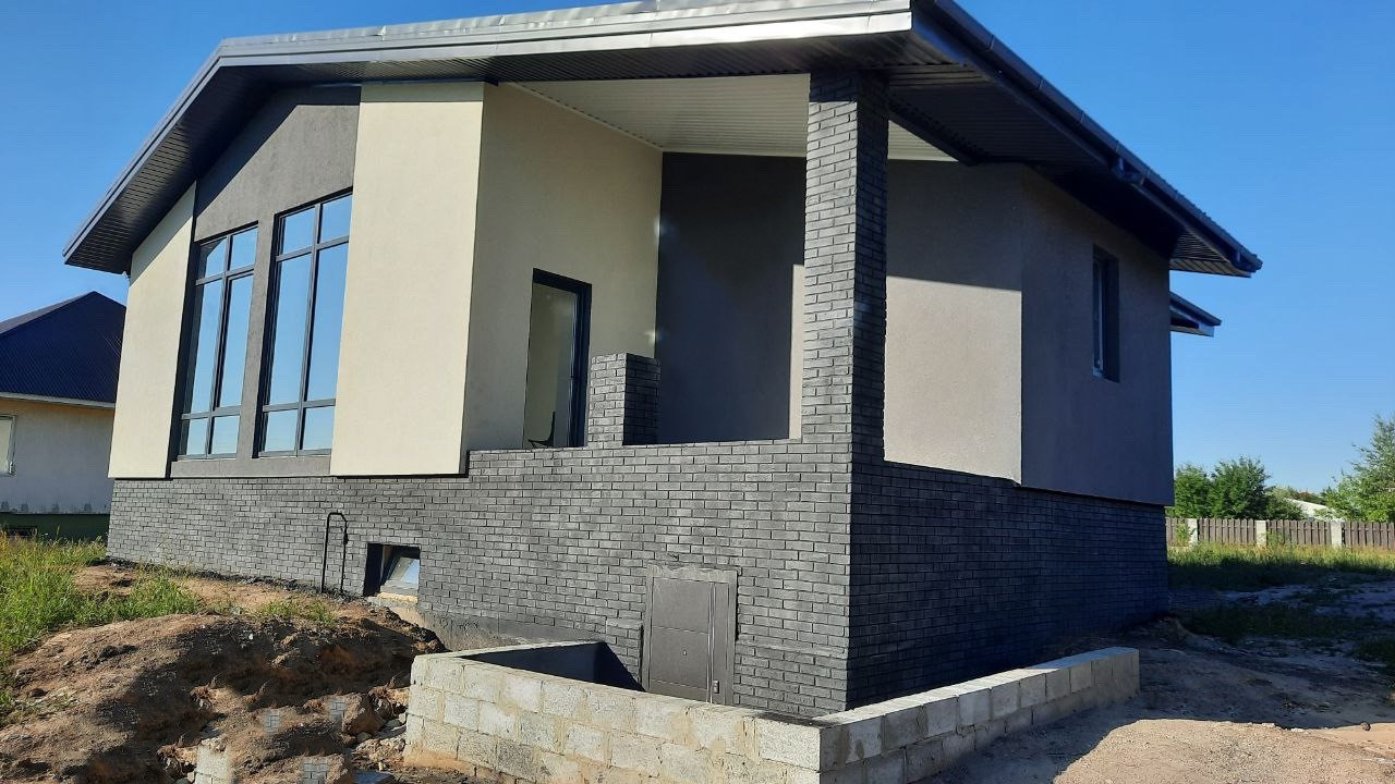 Продается новый стильный коттедж с цокольным этажом. Неповторимое месторасположение участка с великолепным видом на долину, реку (Северский Донец) и панорамными окнами. Общ.площадь 130кв.м + столько же цокольный этаж (свободной планировки) без отделки. Коммуникации все заведены. Центральная канализация. Стены - керамзитобетонный блок 400мм + утеплитель 100мм. Отделка фасада - шубка + панели под клинкер. Крыша - металлочерепица. Окна солар (зеркальная тонировка). На участке имеется два фундамента с цоколями для гаража и хозпостройки. Есть возможность присоединения дополнительной земли.