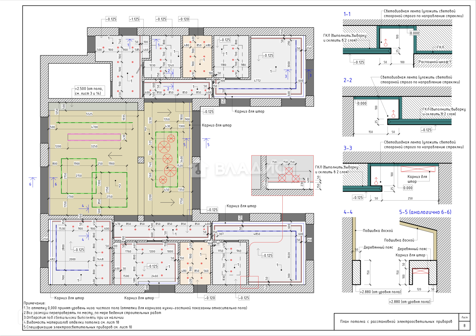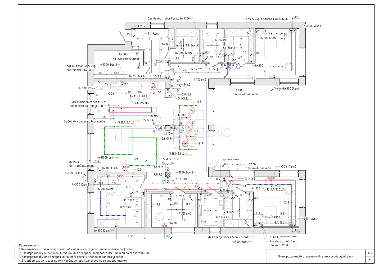 Разведенная проводка согласно технического и дизайнерского проекта.